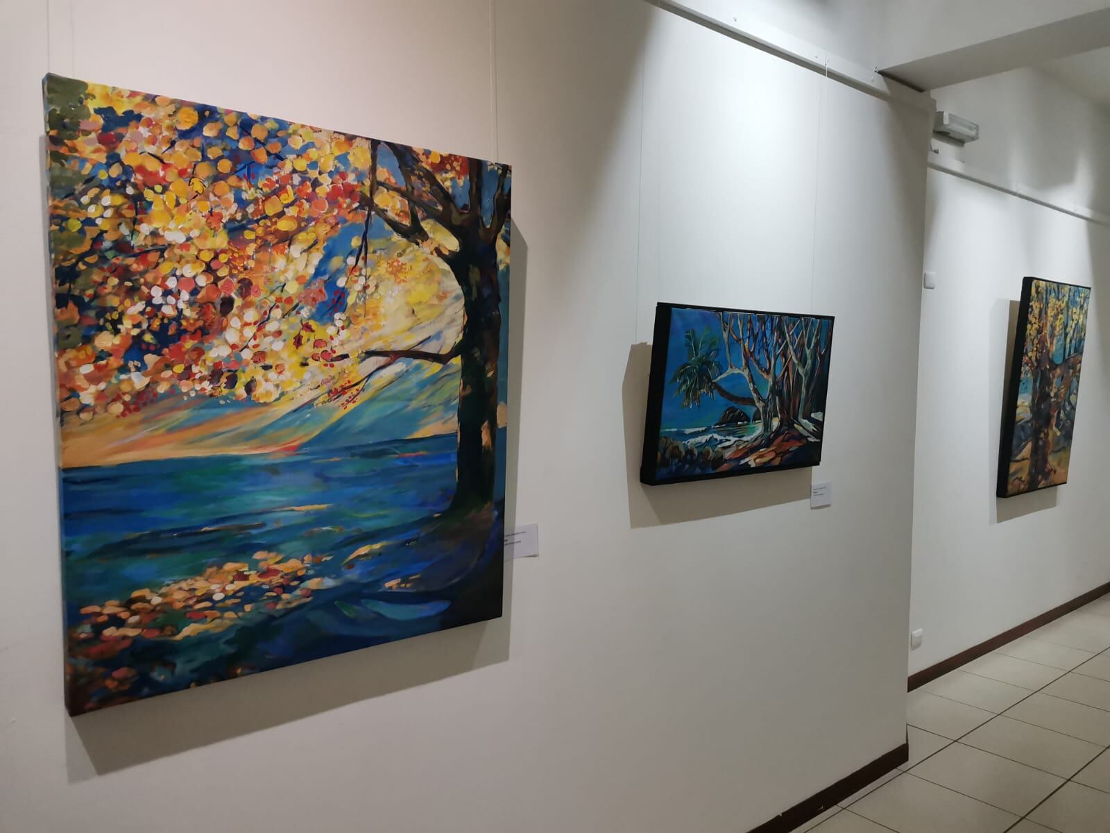 Esta muestra se compone de 14 obras en acrílico. Todas retretan paisajes de lugares nacionales y extranjeros de importancia en la vida de la pintora Gabriela Zeledón