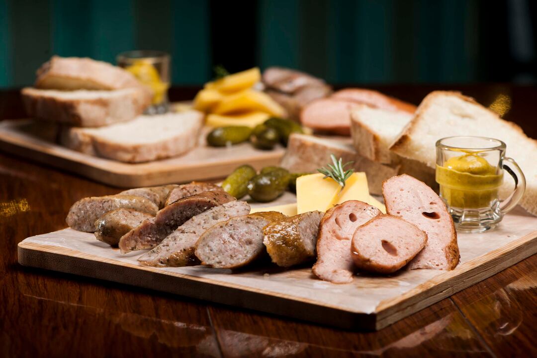 Entre salchichas, y schnitzel de pollo se encuentran ensaladas, papas fritas, el brezel y algunos platos especiales como el camembert empanizado con mermelada o el salmón ahumado.