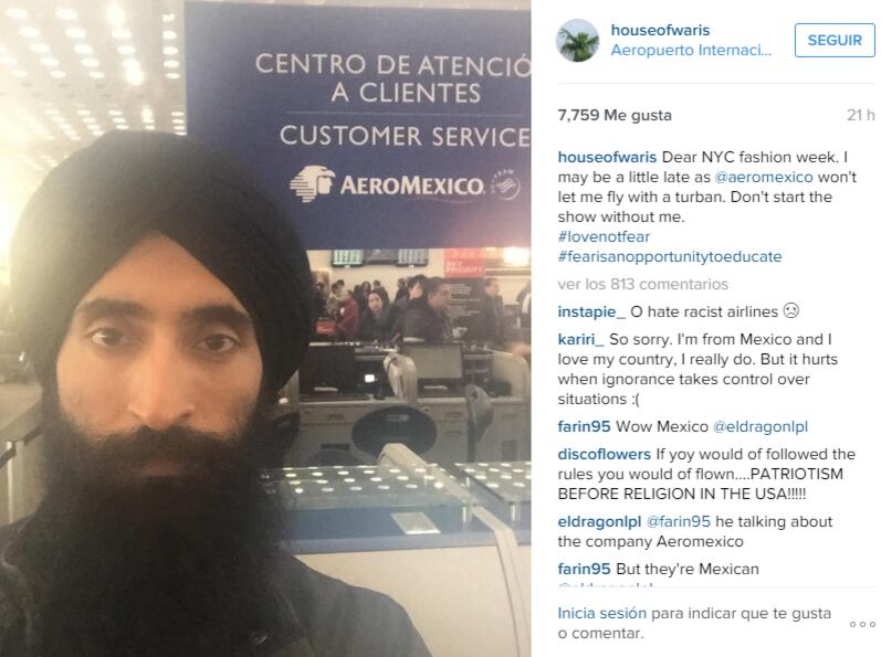 La aerolínea Aeroméxico impidió el lunes al actor y diseñador indio-estadounidense Waris Ahluwalia abordar un vuelo que partía del Aeropuerto Internacional de la Ciudad de México hacia Nueva York por usar turbante.