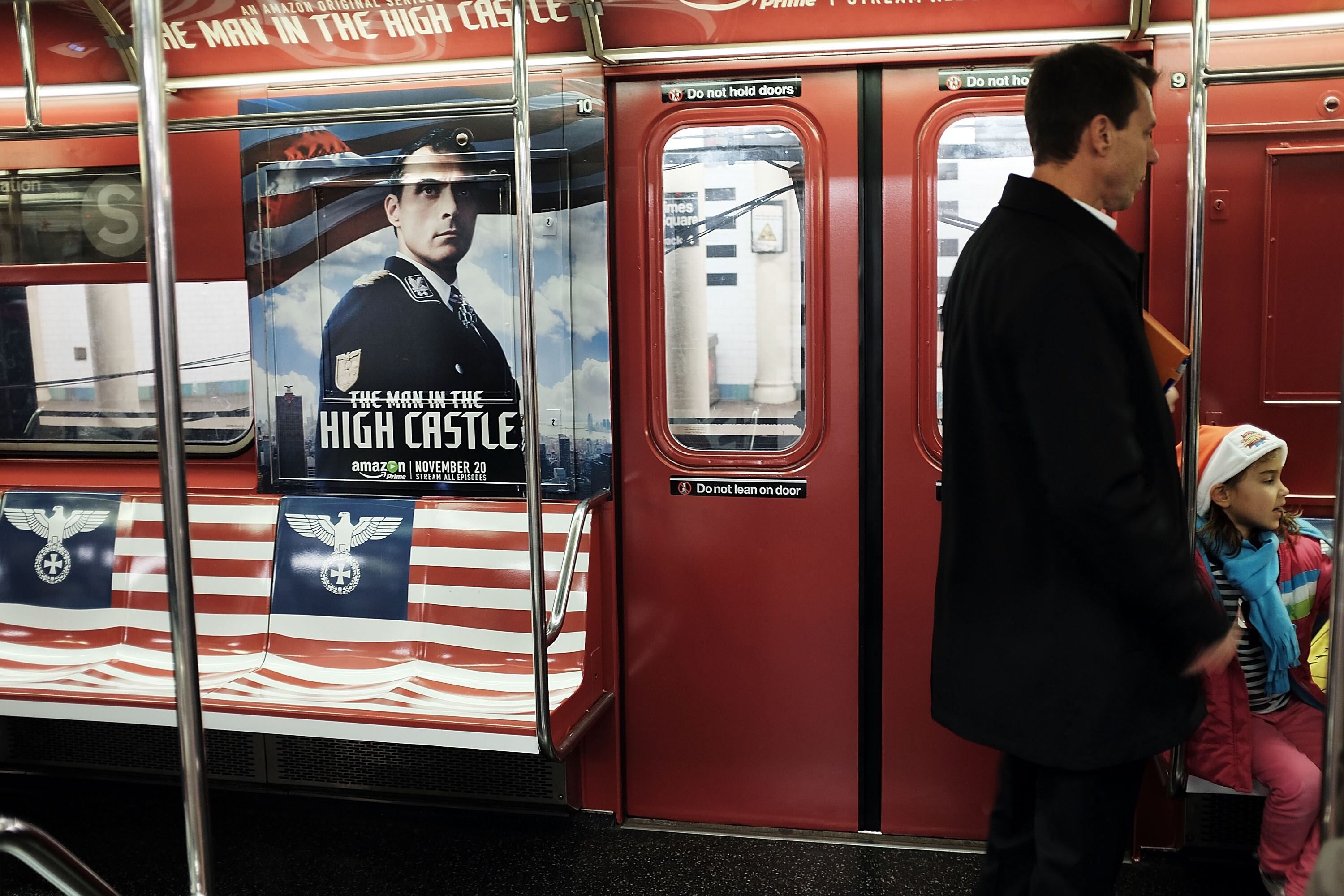 Para promocionar The Man in the High Castle, una producción original de Amazon TV, se decoró el interior de varios vagones del metro con versiones de la bandera estadounidense modificada para incluir el emblema del águila Reichsadler con la cruz de hierro.