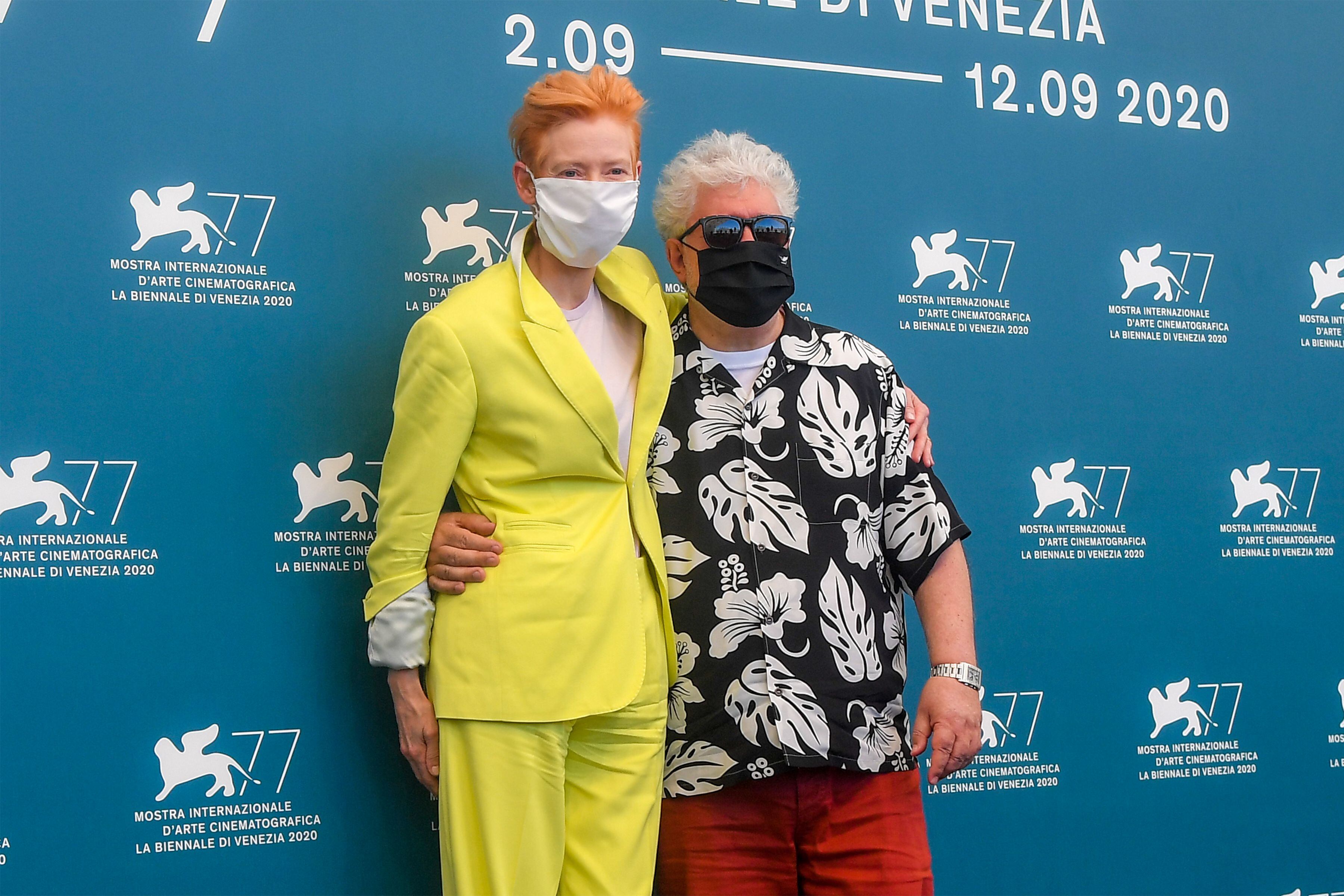 Acompañado por Tilda Swinton, entre las pocas estrellas presentes en una Mostra marcada por el uso de mascarillas y un público reducido, Almodóvar se comprometió ante la prensa a seguir haciendo a cine.