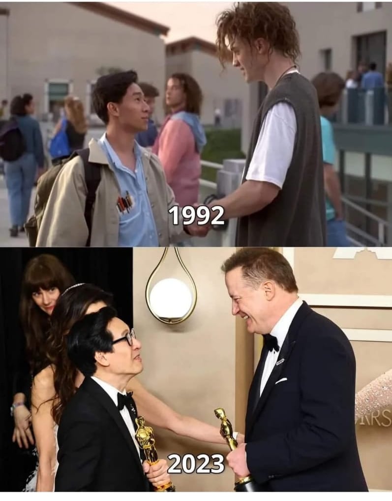 Aquella singular pareja, que había aparecido en una comedia más que olvidada, hoy goza del aplauso del orbe. Hablamos de Brendan Fraser y Ke Huy Quan, dos actores que reivindicaron sus carreras esta temporada tras recibir el reconocimiento de crítica y público y, finalmente, conseguir un premio Óscar este 12 de marzo.