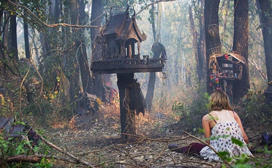 Esta vez no tenemos exactamente una casa embrujada en medio de una región boscosa, sino que estamos ante un grisáceo cementerio selvático donde se levantan altares para honra de los muertos. Se trata de un uso tailandés que el filme trae a este cine de terror, lo que le da un toque original y más sugestivo.