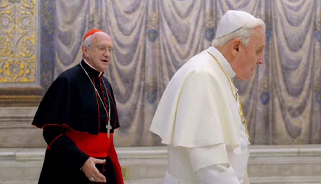 Ratzinger, el erudito hombre seleccionado por la Iglesia por su conocimiento teológico, queda expuesto como el hombre que no supo manejar los escándalos sexuales dentro del clero. Los puntos altos dramáticos aparecen cuando las tesis de cada uno se enfrentan (Ratzinger conservador; Bergoglio más liberal) y la sucesión del sumo Pontífice se complica.