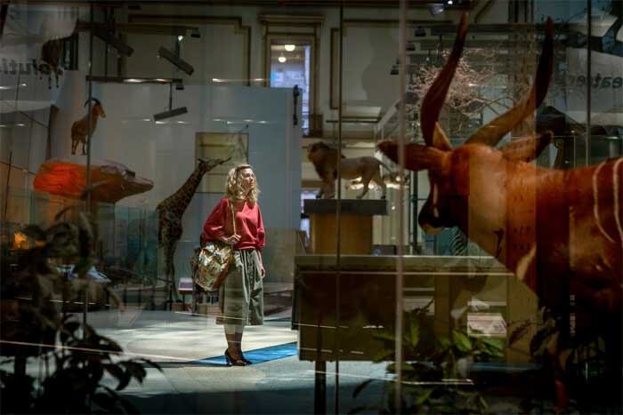 En esta primera imagen se ve cómo Barbara Minerva observa a los animales dentro de una sala de museo: