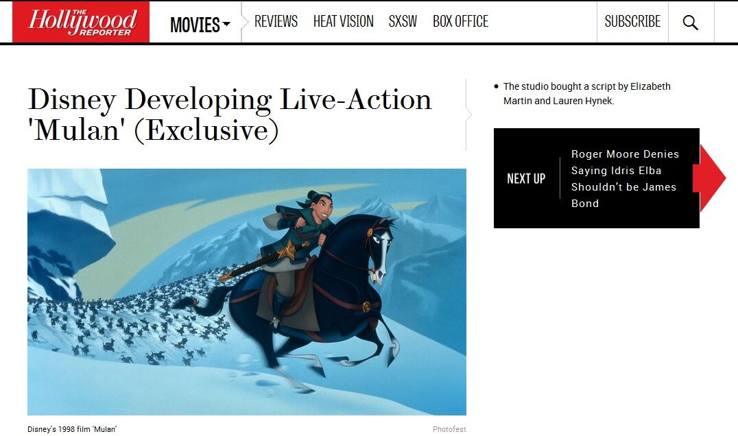Mulan es reconocida por ser una de las más grandes heroínas de la historia y según The Hollywood Reporter Disney ya adquirió un guion para llevar su vida al cine en personaje real.