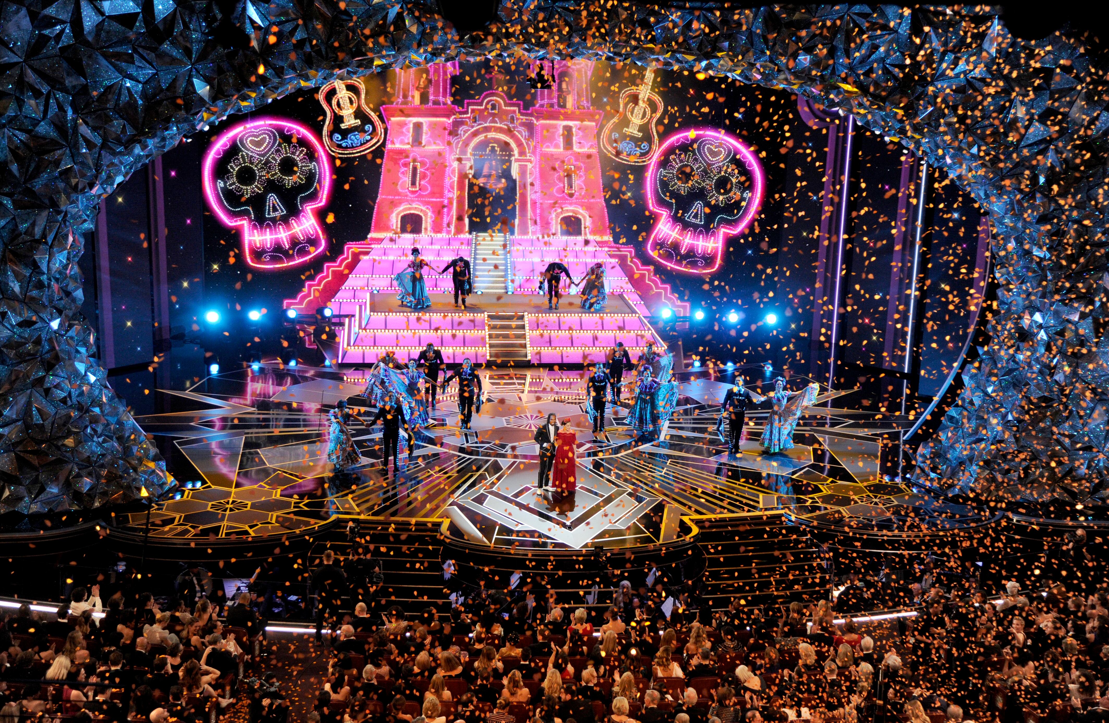 “Viva México”, dijo Derbez con orgullo, para llamar al escenario a sus paísanos Gael García Bernal y Natalia Lafourcade. Ambos artistas, junto a Miguel, cantaron el tema Remember Me, de la cinta Coco, con un escenario color azteca brillando de punta a punta.