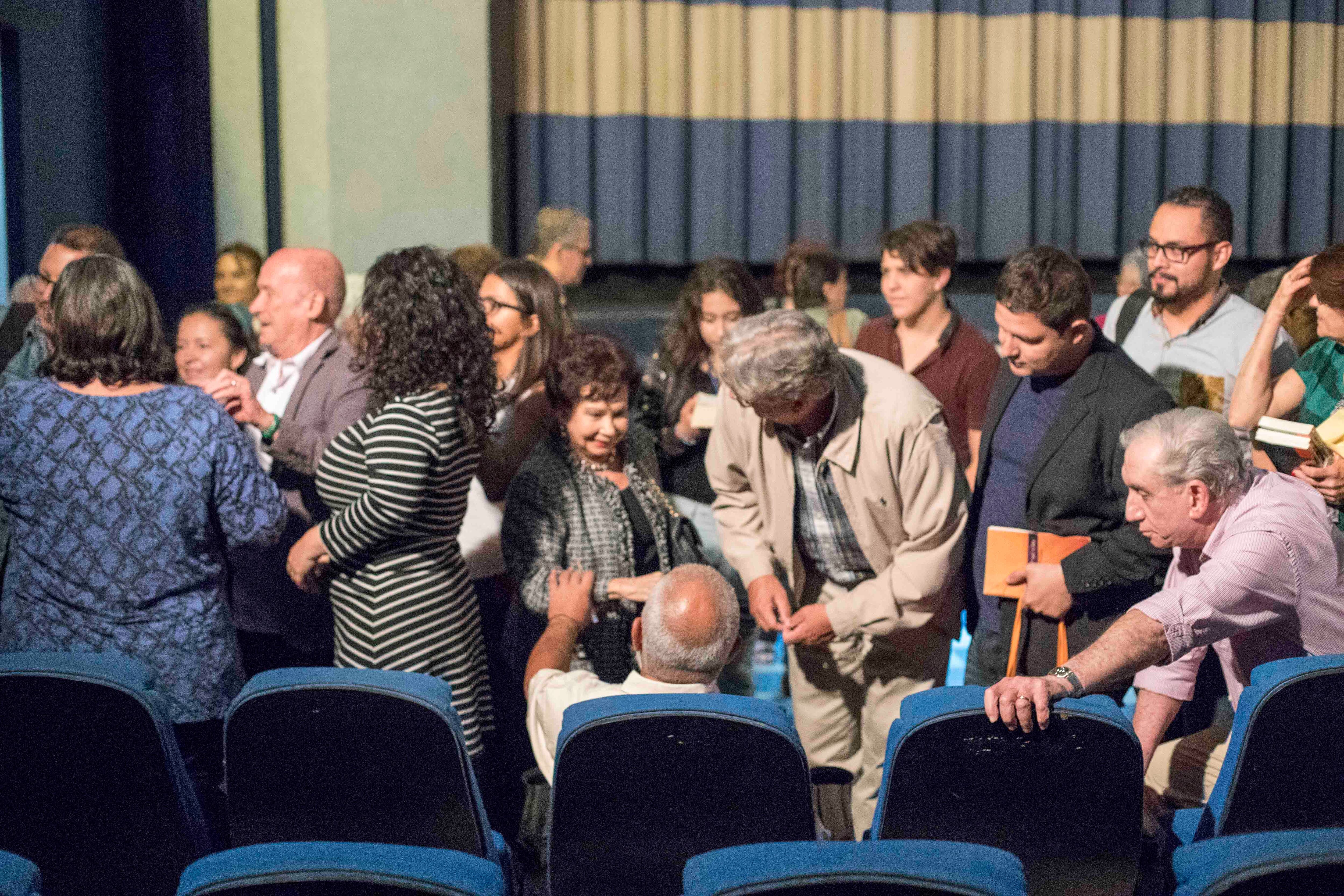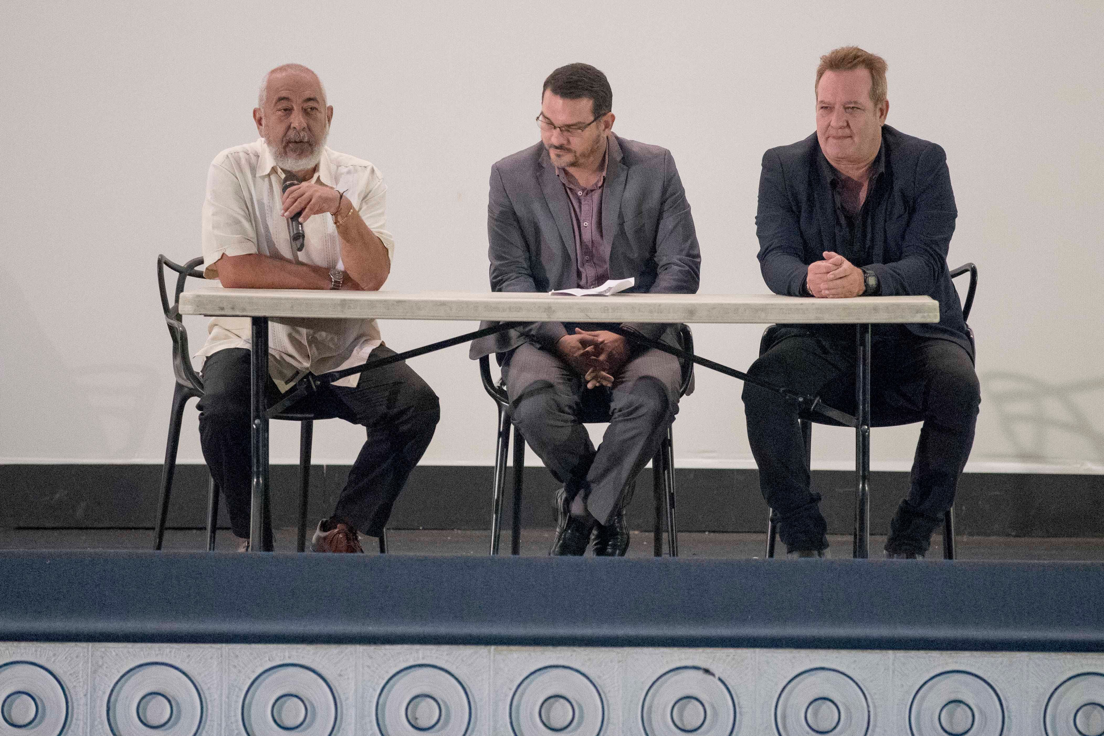 Tras la proyección, Padura subió al escenario del Magaly junto con el actor cubano Jorge Perugorría (quien interpreta a Eddy, uno de los cinco amigos protagonistas de Regreso a Ítaca) y el director del Centro de Cine, Fernando Rodríguez.