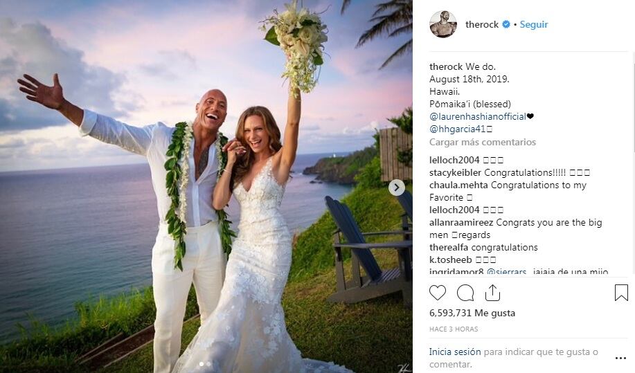 En el plano personal las cosas también le salieron de maravilla. En agosto se casó con Lauren Hashian, su novia por 12 años y madre de sus dos hijas. Además, el mismo mes se despidió por completo del mundo de la lucha libre, luego de 20 años de carrera, y fue reconocido como el actor mejor pagado de Hollywood con $89.4 millones generados entre junio de 2018 y 2019.