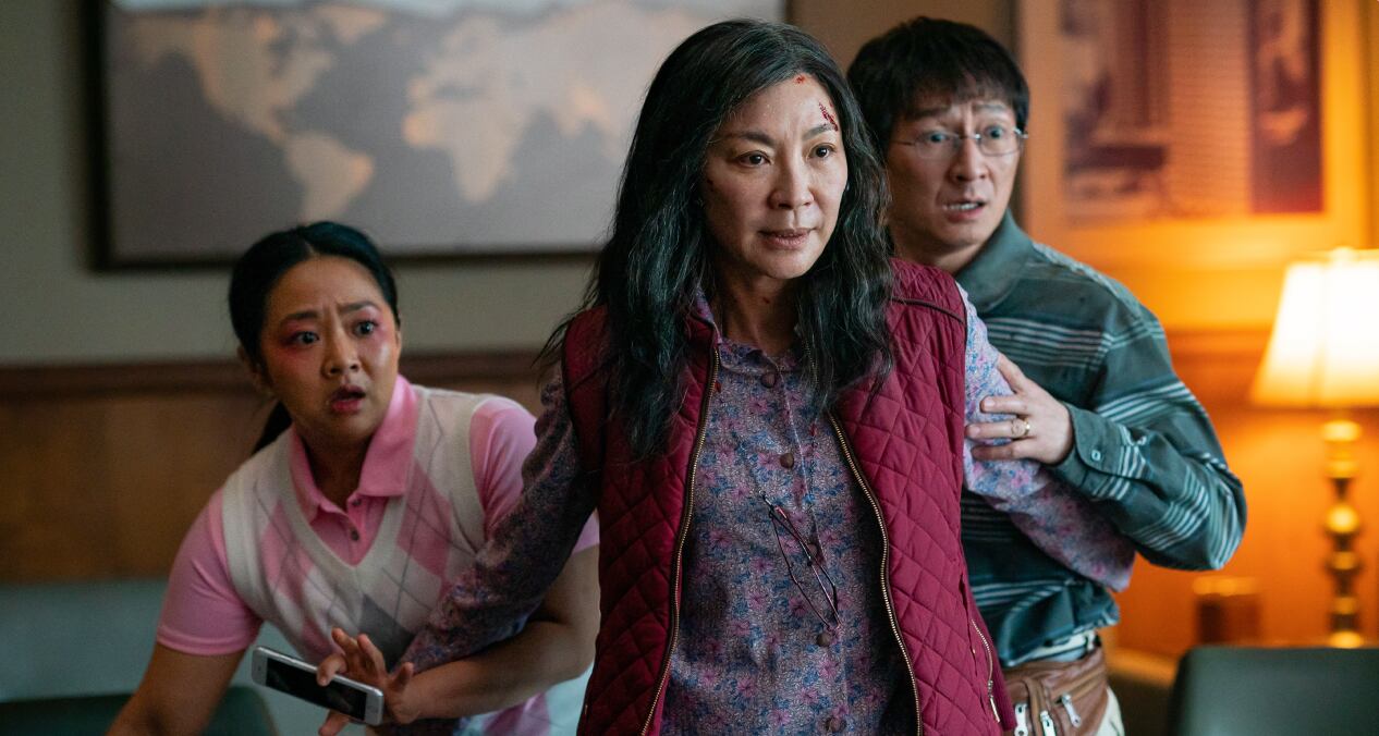 Con una historia sobre multiversos (curiosamente estrenada al mismo tiempo que la nueva entrega de Doctor Strange), este filme quiere colocarse como una bocanada de aire fresco en la cartelera nacional. Michelle Yeoh -conocida previamente por la serie Crazy Rich Asians y la maravillosa película Crouching Tiger, Hidden Dragon-, protagoniza este largometraje.