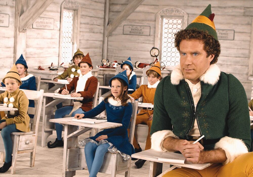 Elf (2003). Buddy (Will Ferrell) debe redescubrir, a prueba y error, su propia humanidad después de haber sido educado toda su vida con duendes en el Polo Norte.