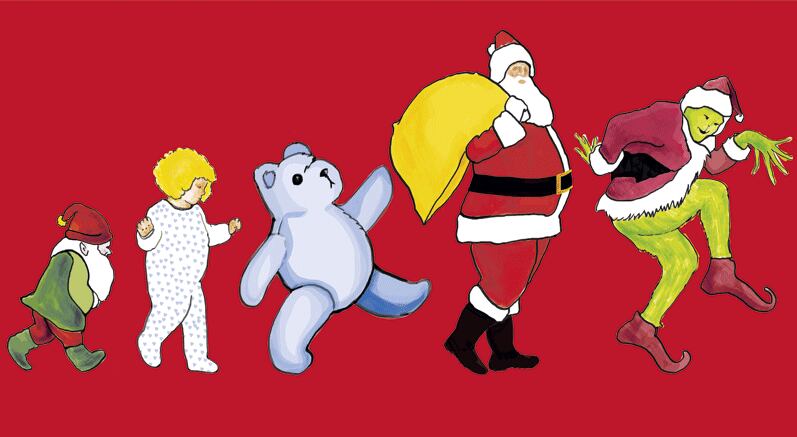 En su exponente más vistoso, la magia es encarnada por el Santa Claus imaginado por primera vez por Thomas Nast en 1866 : barbudo, abundante en carnes y vestido de rojo (visto en Santa Cláusula , de 1994, o Elf , del 2003).