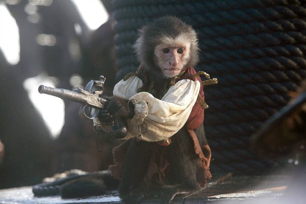 "El integrante más memorable del elenco fue el mono, porque vomitaba todo el tiempo", señaló la actriz. "Tenía un estómago muy pequeño y cuando estábamos rodando en el barco vomitaba en medio de las escenas, era muy gracioso", añadió.