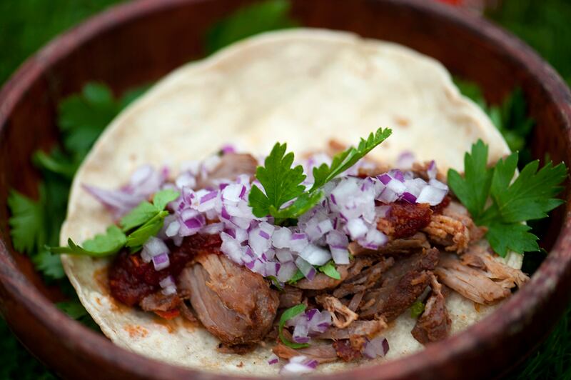 Para servir, triture la carne y se mezcla con el líquido residual. Se puede comer como un plato acompañado de arroz o puré de papas y vegetales, o hacer tacos con cebolla y culantro.