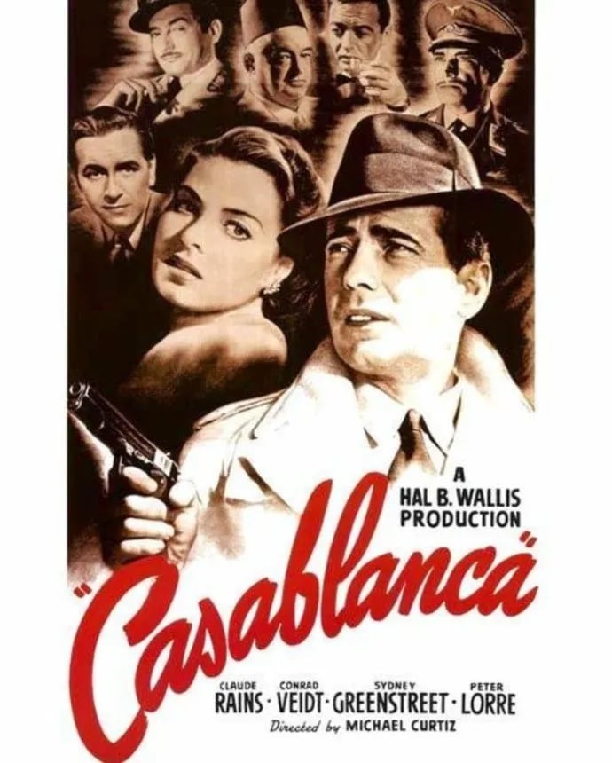 Durante la Segunda Guerra Mundial, Rick Blaine (Humphrey Bogart) tiene un local nocturno en la ciudad de Casablanca. En ese momento, llega su examante Ilsa Lund (Ingrid Bergman), pero esta vez está casada con uno de los líderes de la resistencia contra los nazis. Disponible en HBO Max.