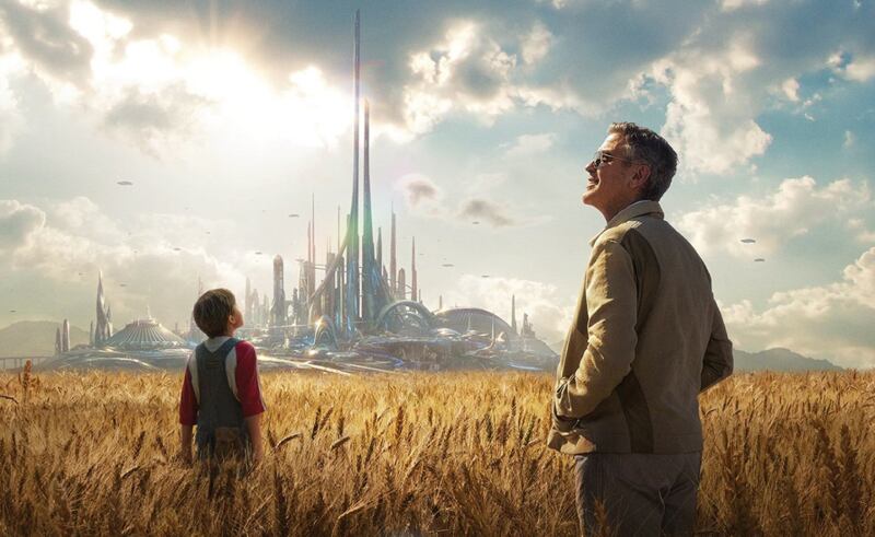 En el caso de Tomorrowland , filme dirigido por Brad Bird, George Clooney encarna a un inventor frustrado que conoce por casualidad a una joven fascinada por el mundo científico.