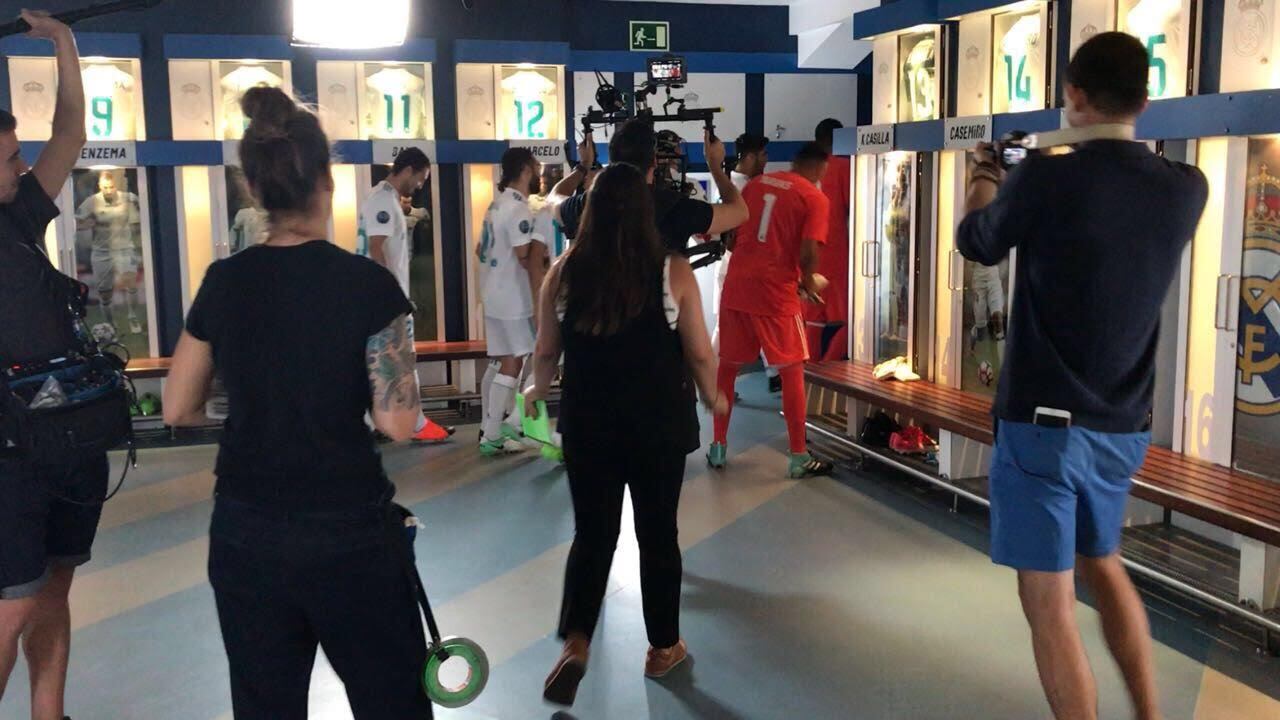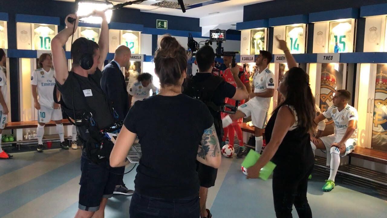 Las escenas filmadas en el camerino del club merengue se dieron un día después de que el equipo se enfrentará al Barcelona FC. Dinga Hines detalló cómo fue el trabajo en el Santiago Bernabéu, coloso al que tuvieron acceso durante dos días.