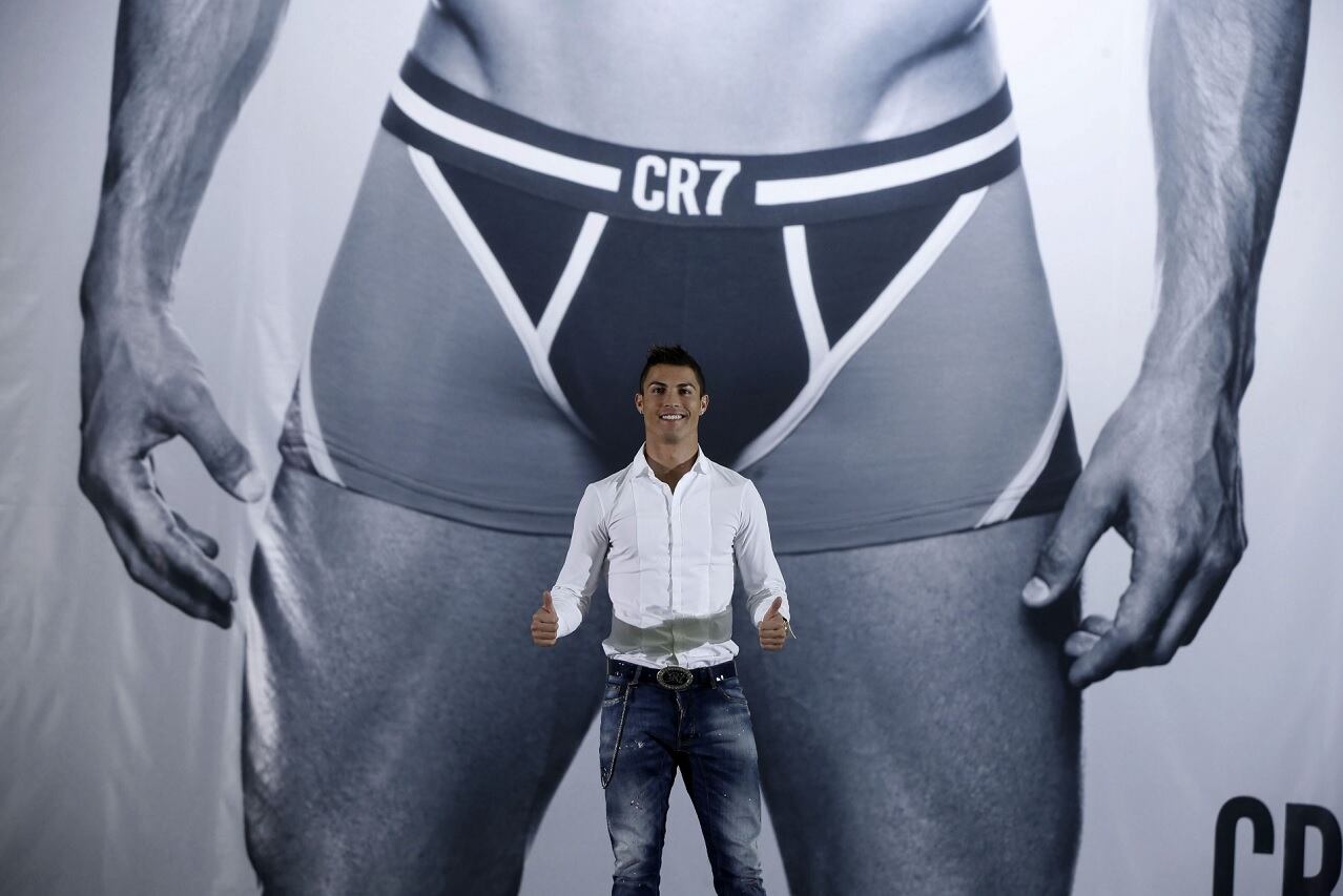 La poderosa imagen es parte de la decoración propuesta por la empresa danesa JBS Textile, y en ella el portugués luce un nuevo modelo de su propia colección, CR7, que, según figura en la web de la marca, ronda los 25 euros.