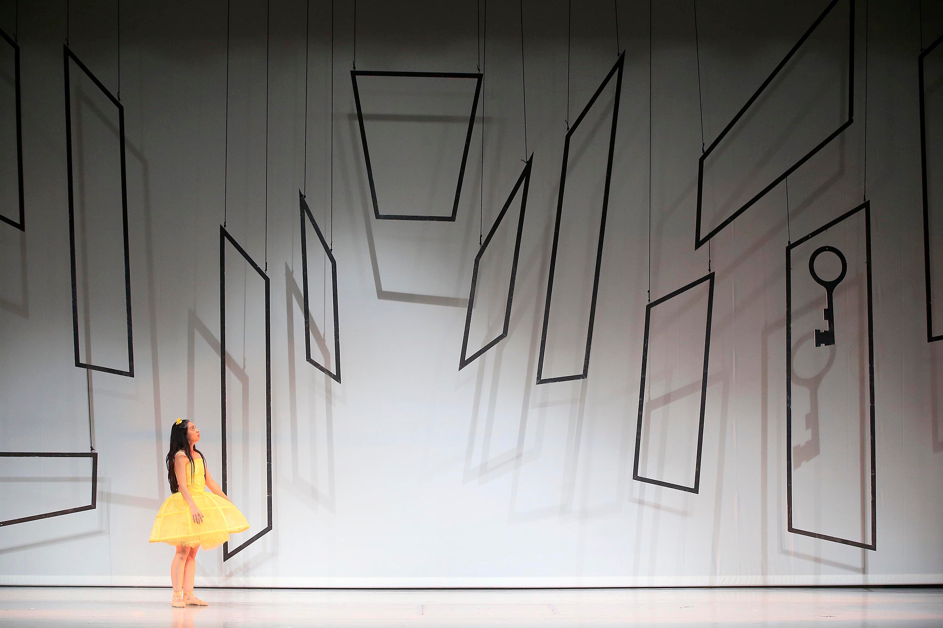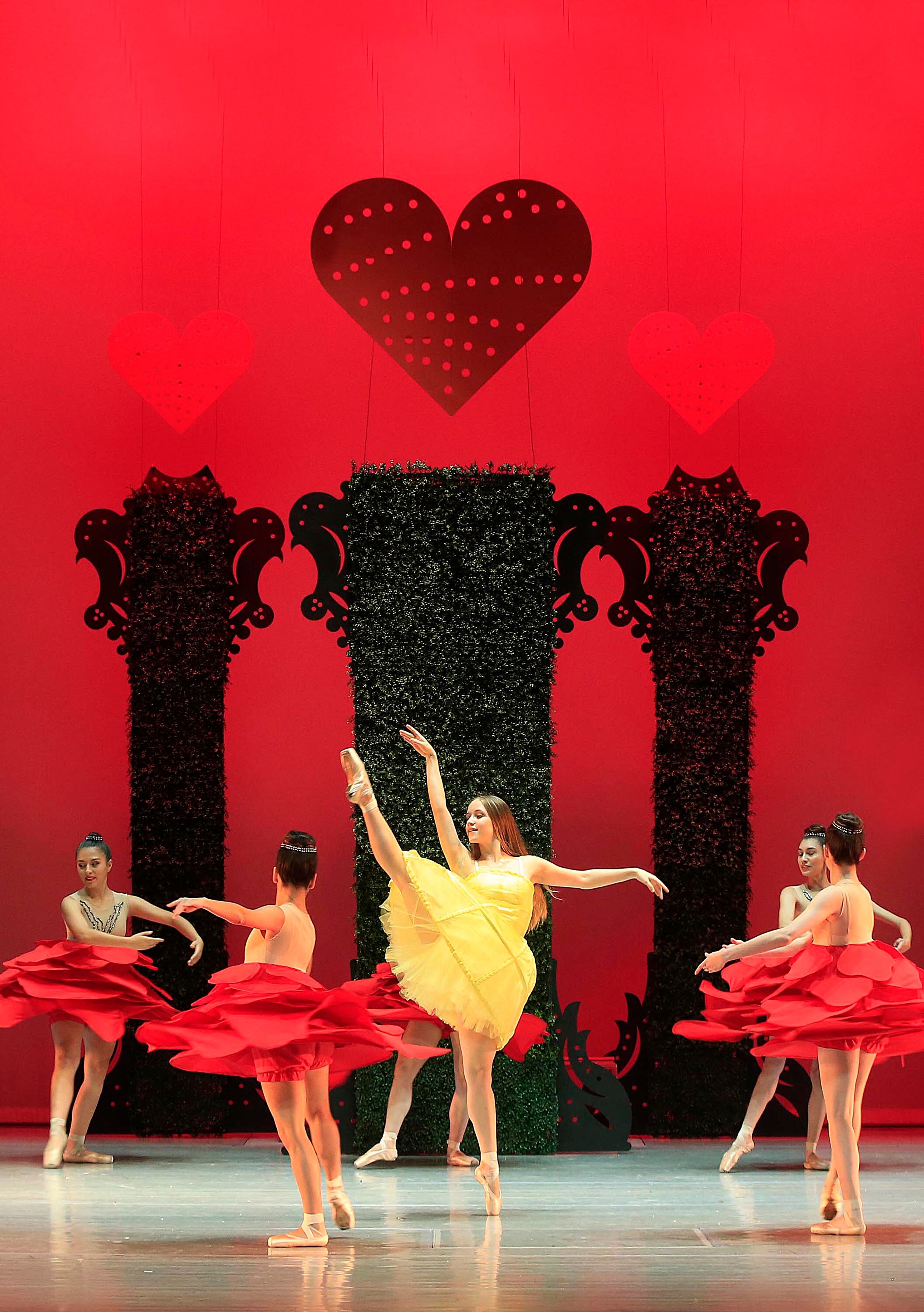 Alicia gira al ritmo de los demás y con mucha efervescencia en el escenario para recrear todos esos pasajes lúdicos que convirtieron el relato de Carroll en algo mítico.