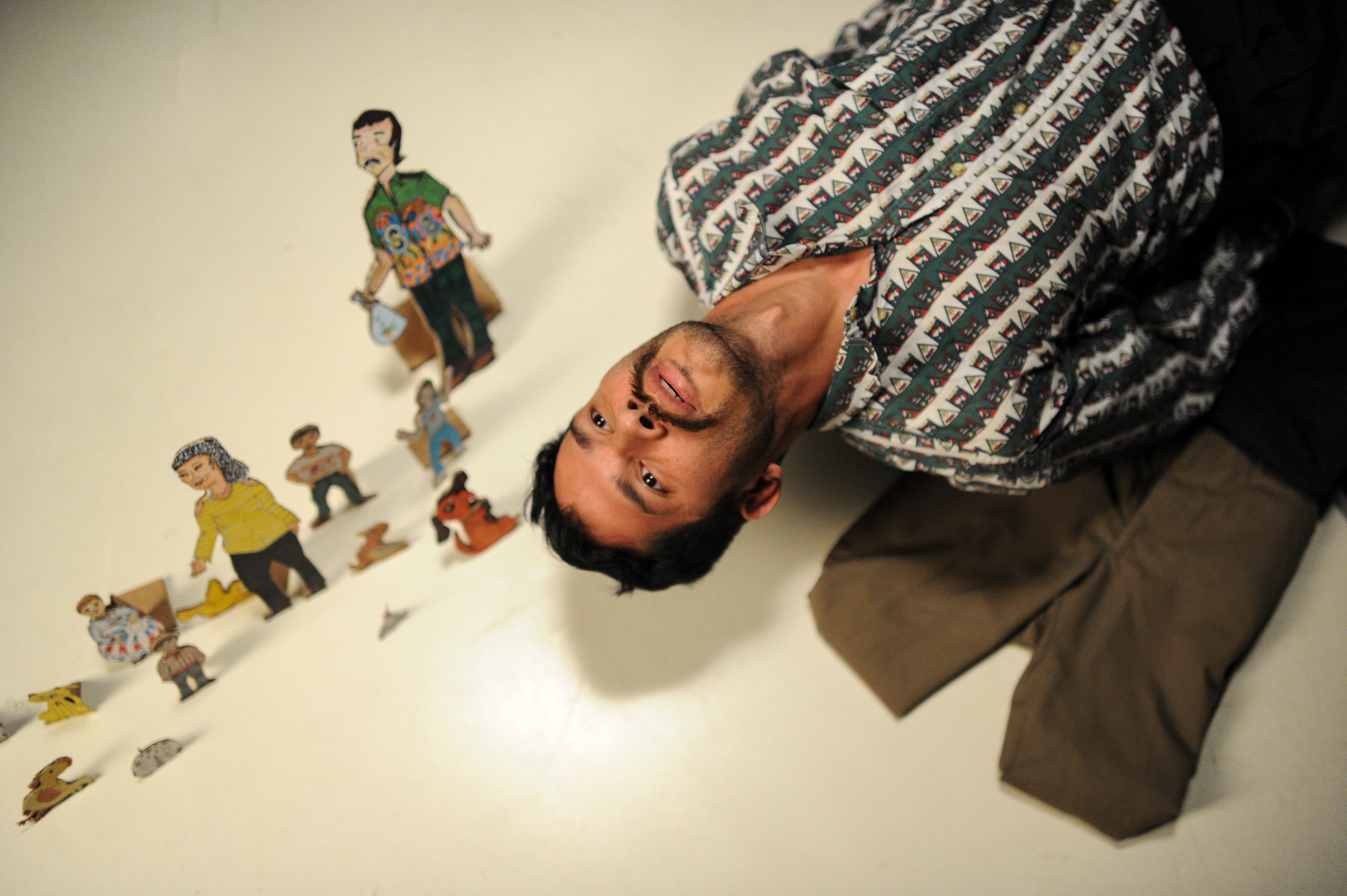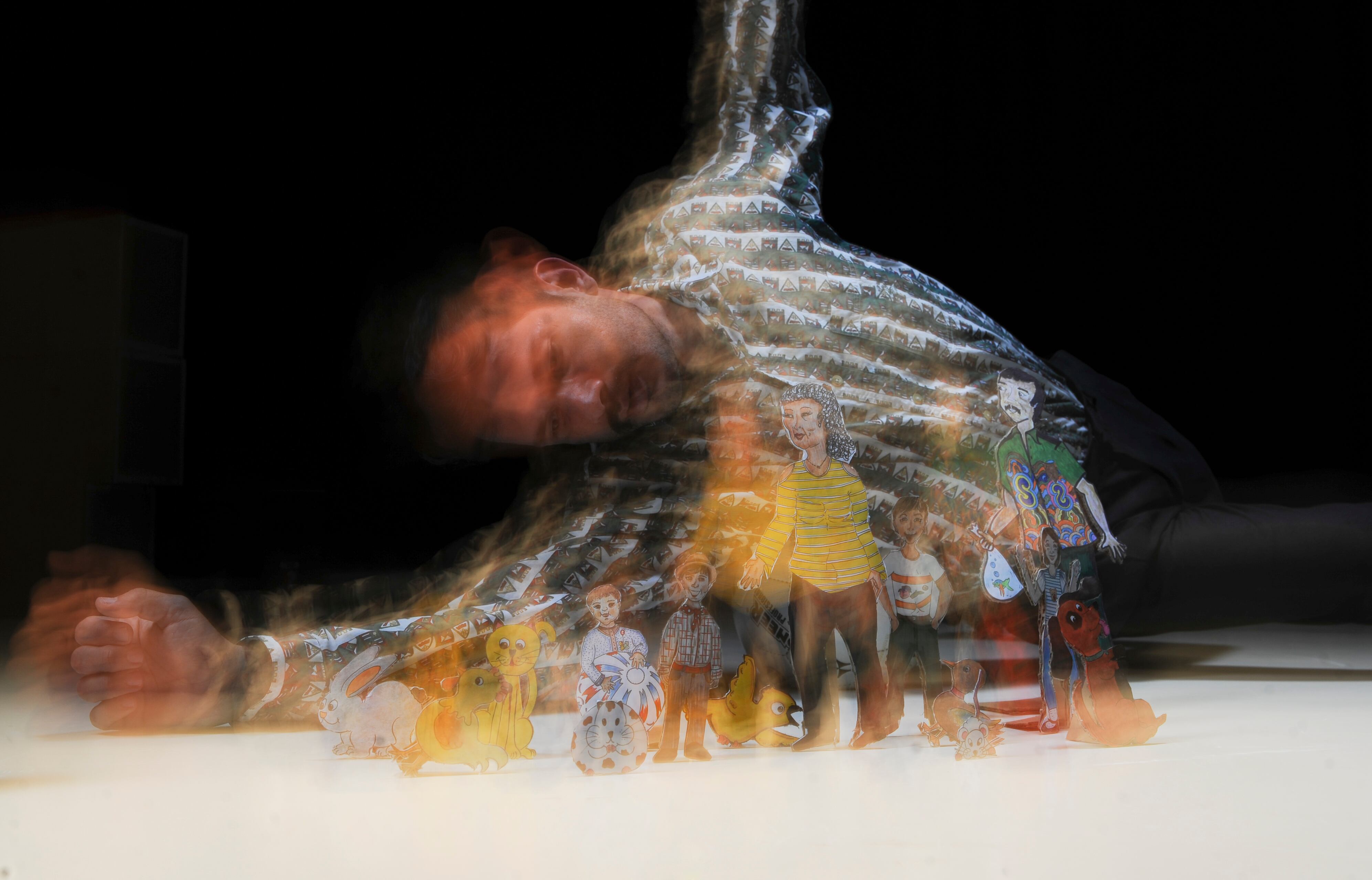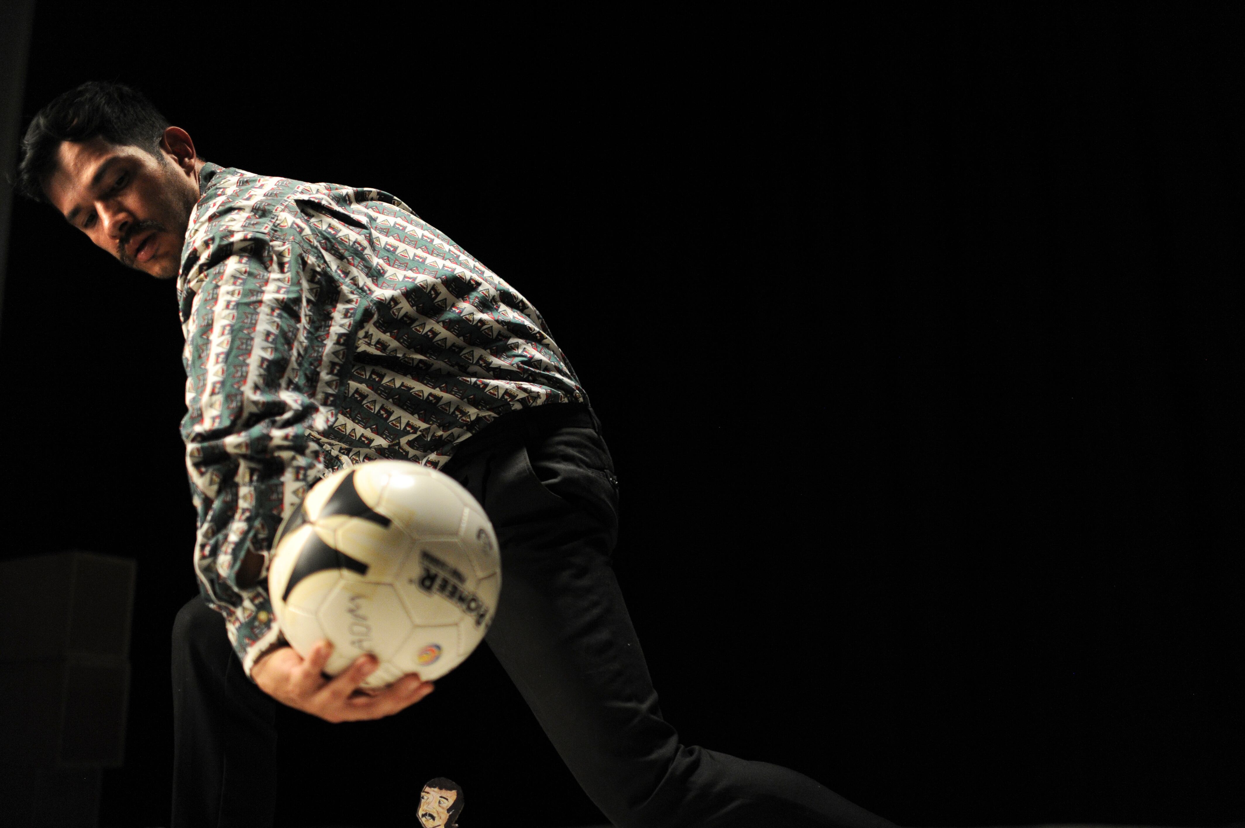 Para la puesta en escena, Gamboa utiliza un montaje austero, con escasos elementos como una bola de fútbol, una ropa tendida y un teatrino cargado de símbolos de su niñez.