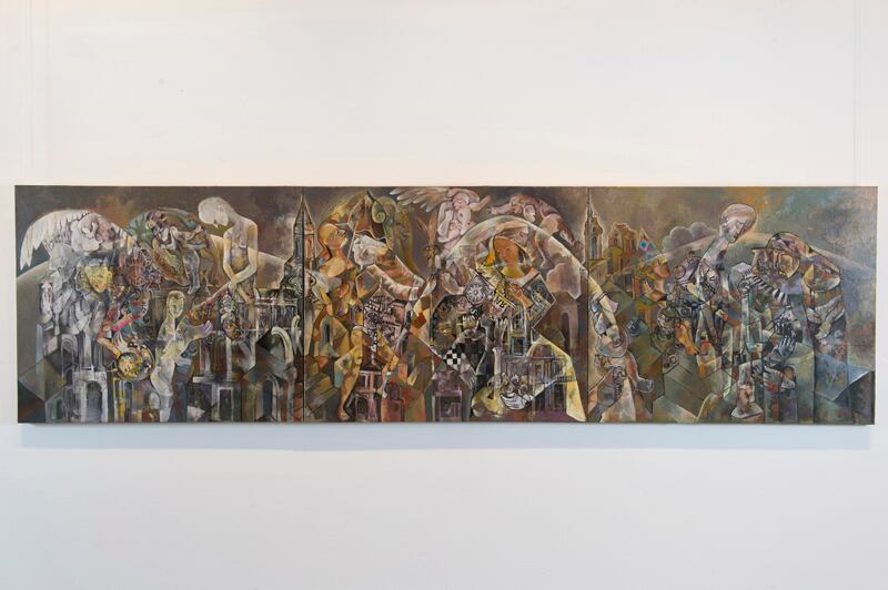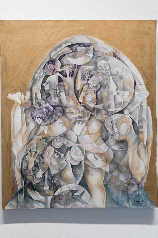 “Primero pinto y después pienso. Le voy agregando y ella me va diciendo qué va y qué no. Esa construcción del espacio la voy haciendo según lo que me sugiera el cuadro. Tengo claros los elementos; la obra me va sugiriendo dónde voy colocando las figuras”, dice de su proceso de trabajo.