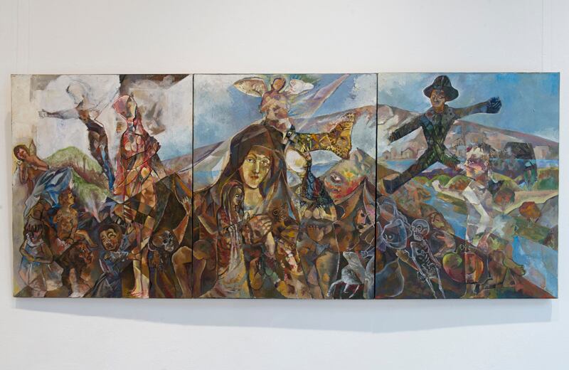 Ciudad total. Uno de los trípticos exhibidos en Viaje al trópico es su gran visión de Berlín. Aquí, la capital alemana aparece como sitial de la memoria. La obra recuerda las divisiones históricas concretadas en el Muro de Berlín: “Tiene que ver con las almas que murieron intentando alcanzar la felicidad y una vida mejor”, describe.