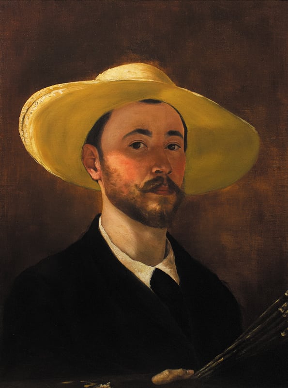 Igual de importante es el modo como se presenta a sí mismo. Con la rigurosidad propia de la academia, se representa con sombrero, pinceles y paleta en mano. Este instrumental es indispensable para pintar al aire libre, práctica que –cabe destacar– no era frecuente en la Costa Rica de finales del siglo XIX. Consecuentemente, en esta obra subyace una especie de declaración de principios en la que el artista se define a partir de sus afinidades estéticas y dignifica su quehacer.