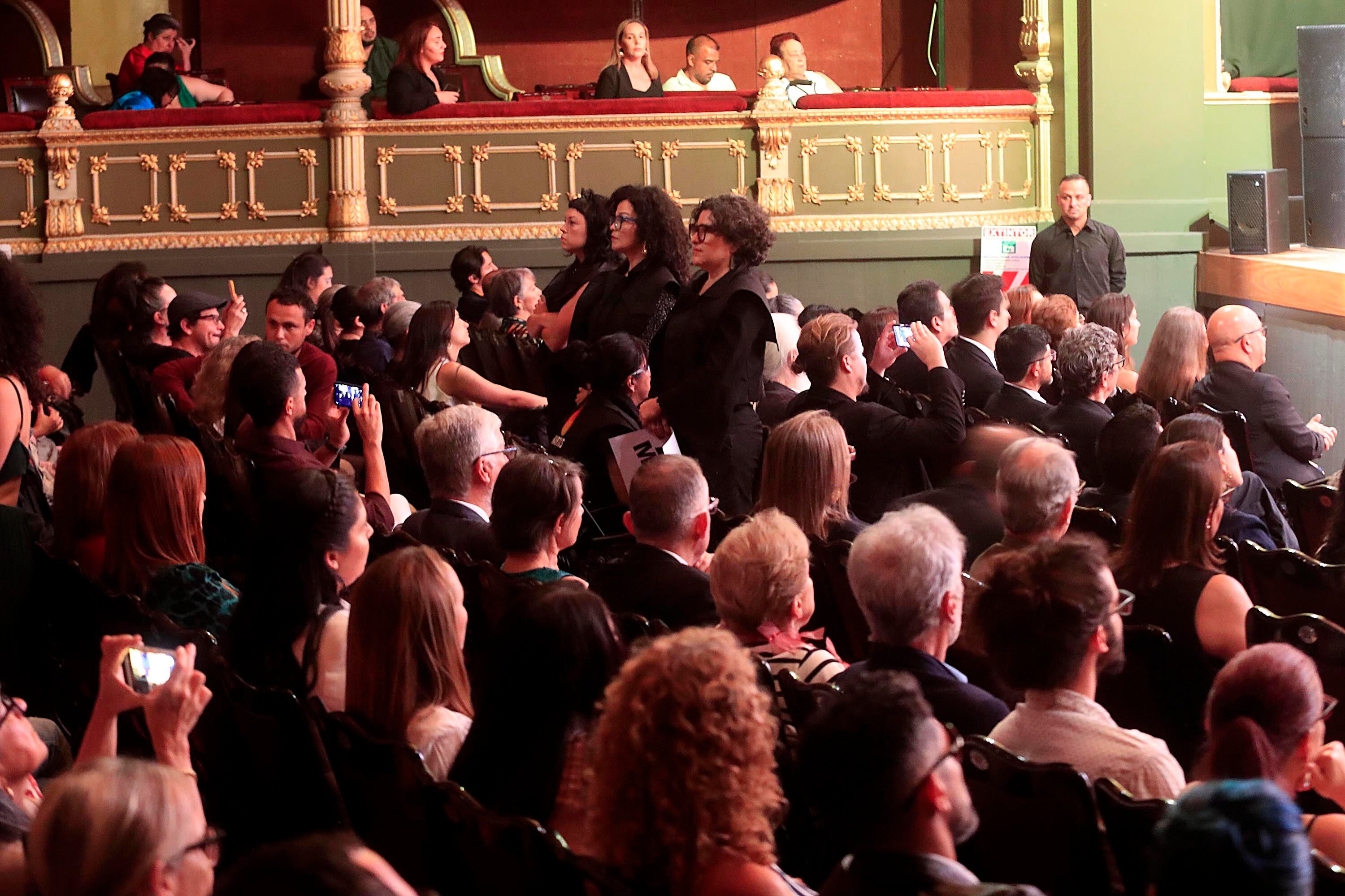 Los artistas aprovecharon cada momento de la gala para dejar en evidencia la molestia con la labor de la actual jerarca. Uno de esos momentos fue durante la presentación de un extracto de la obra de teatro Santiago, protagonizada por Carlos Alvarado. De repente, el público interrumpió la puesta en escena para manifestar cómo se sentía.