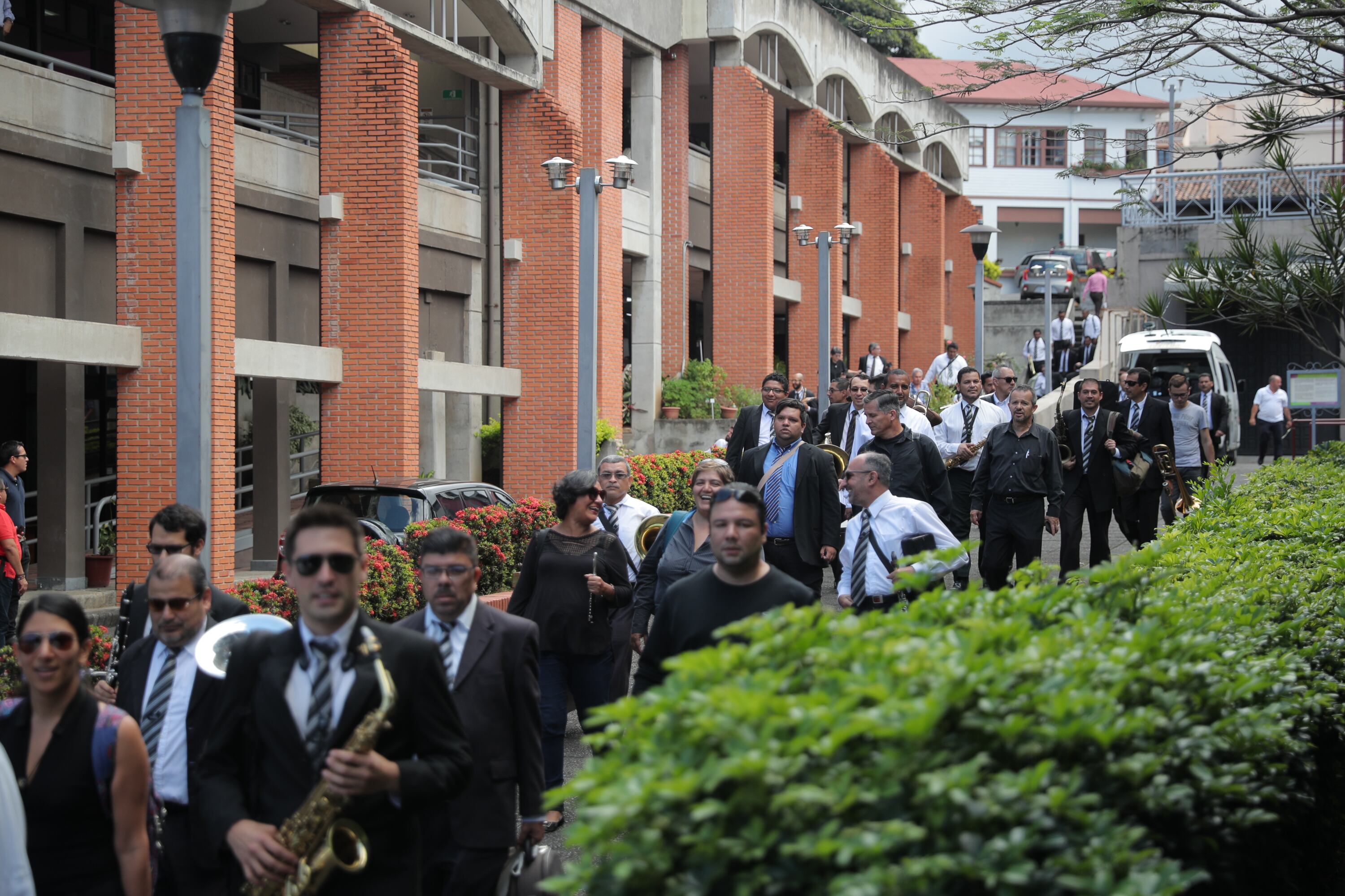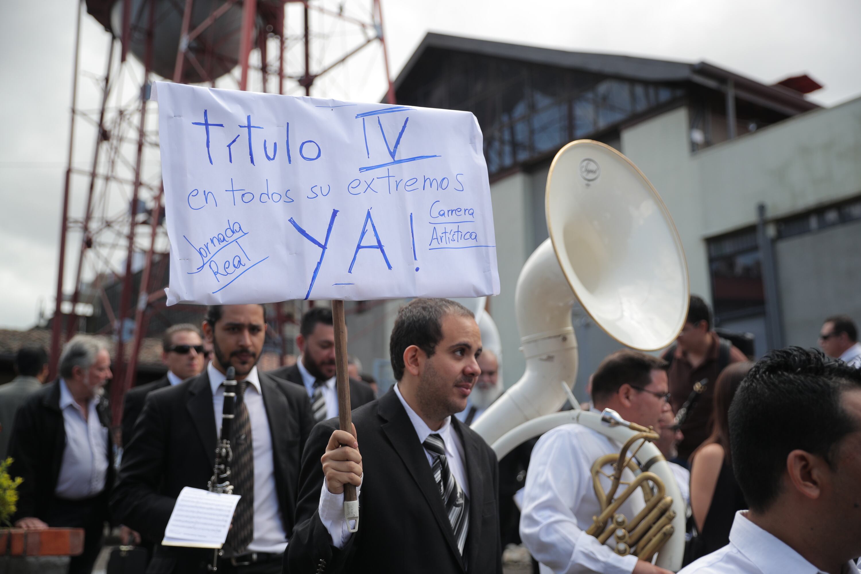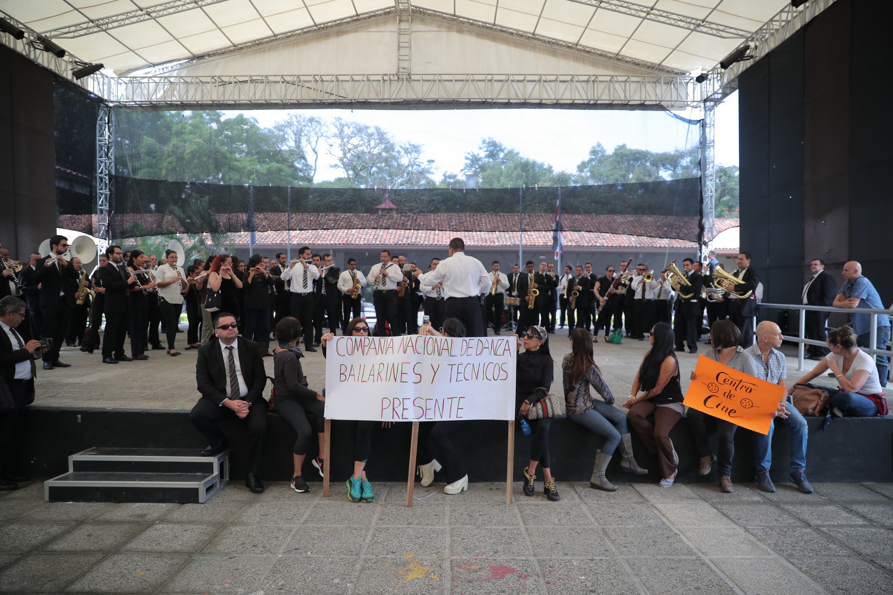 "No podemos ser tratados como otros empleados públicos: no es lo mismo ser una secretaria ejecutiva por ocho horas que tocar un trombón por ocho horas o hacer danza por ocho horas, pues son trabajos que requieren cuidados especiales", explicó Sergio Masís, dirigiéndose a sus colegas artistas en el anfiteatro.