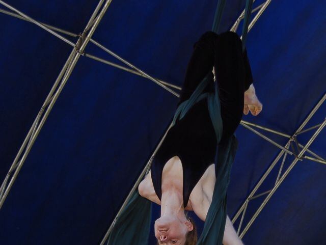 La artista, una de las pioneras en danza con telas en Francia, es la fundadora y directora de la prestigiosa Drapés Aériens.
