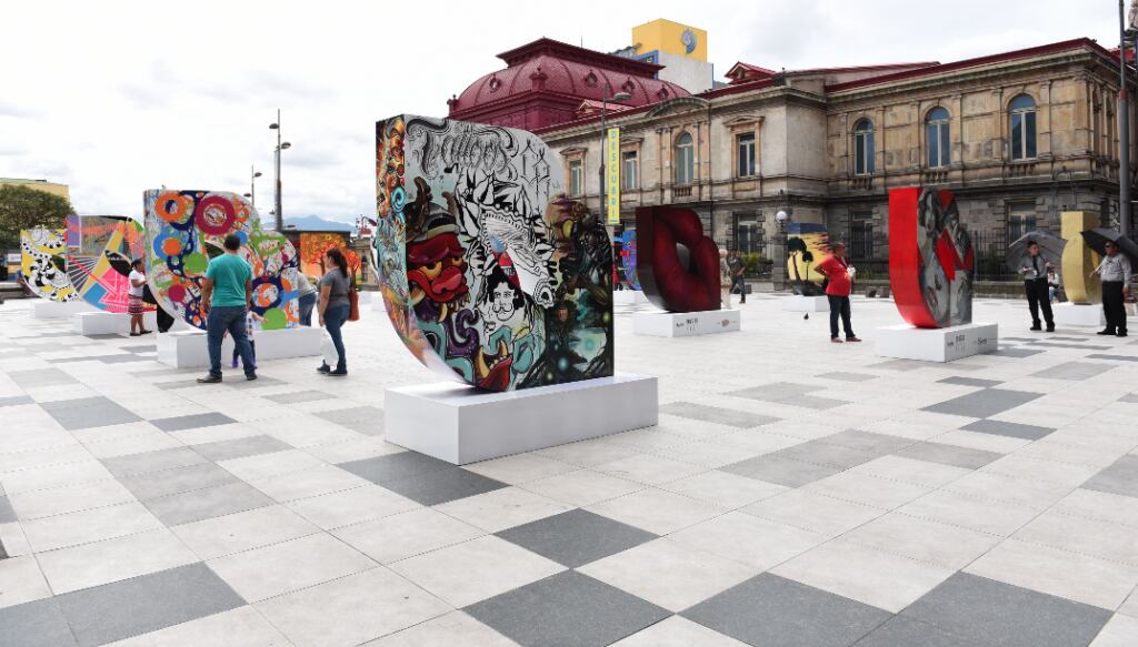 Llamativas esculturas en forma de boca tomaron la Plaza de la Cultura, en San José, desde el domingo 10 de setiembre como parte de la tercera edición del Urbana Fashion Street Art 2017.
