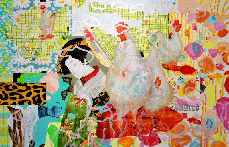 Karen prosigue: “Laura Quesada es contundente en la línea y su fragmentación. Sus colores revelan depuración técnica. Sus cuadros dialogan bien con obras mucho más cargadas de capas de lectura, como las de Irina Rosenfeldt”.