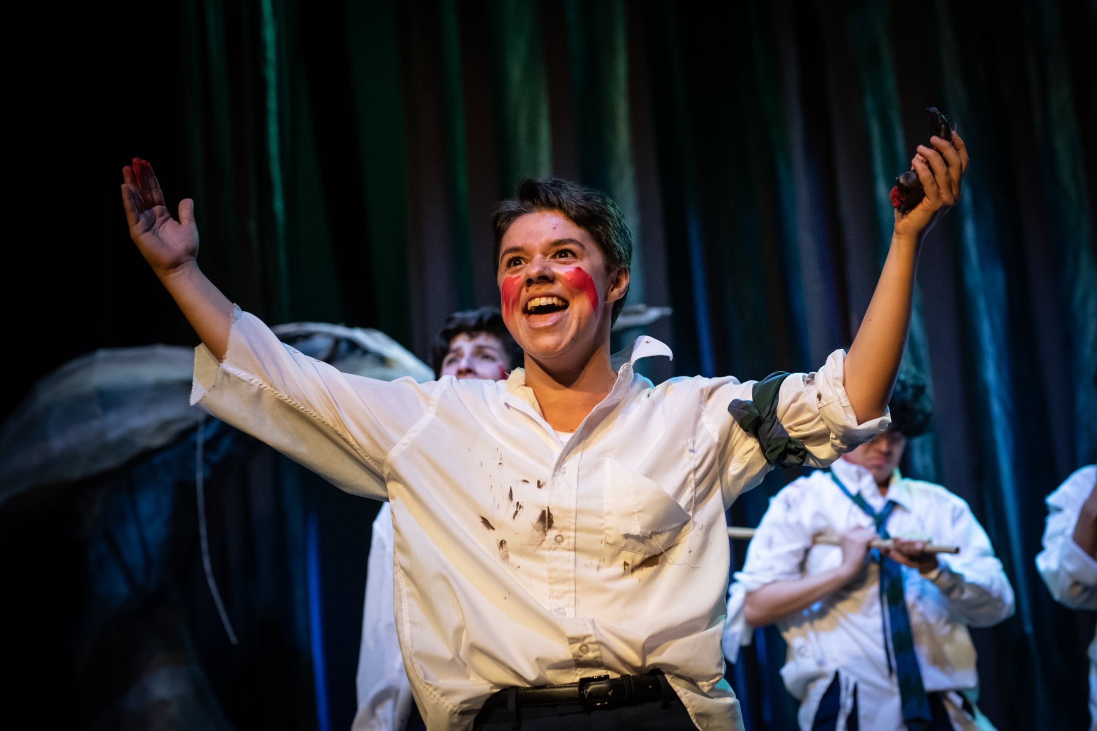 Los personajes son interpretados por actrices adultas que materializan, de forma convincente, a menores cercanos a la pubertad. La pericia técnica y un sólido trabajo de vestuario y peluquería les permite superar un reto enorme, por las obvias distancias de edad y género. La entrega del elenco arrastra al público hacia la tragedia de un inocente grupo infantil que termina convertido en la peor de las hordas.