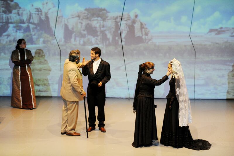 Los actores llenaron el espacio con sus desplazamientos, pero no asumieron que cada uno de sus gestos debía profundizar –por contraste– el drama de la recién casada dispuesta a fugarse con su antiguo novio. Las distracciones provocadas por el “ruido visual” del fondo le quitaron foco a los diálogos en proscenio.