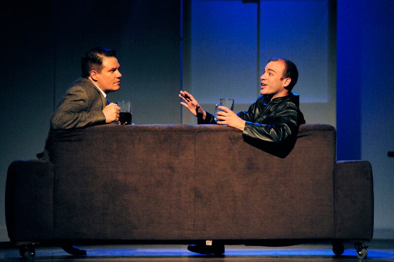 Algunos espectáculos nos hablan aún antes de cumplir con la formalidad de la tercera llamada. En este caso, un par de paneles ubicados al fondo del escenario muestran dos piezas claves de información. A la izquierda, una suculenta manzana roja; a la derecha, el inciso once de la ley penal inglesa que tipificaba las prácticas homosexuales como un delito.