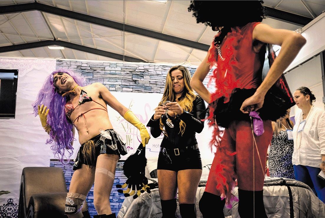 El resultado: sexo, ¡al fin!, en una feria sobre precisamente eso. Hasta las 4 p. m., cuando arribó el tropel vestido en drag dañado, en labial corrido y blusas transparentes, todo era muy seguro en el salón. Sí, había un huevo para masturbarse; un "diván de placer" para practicar "16 posiciones básicas, pero demostradas, 98"; también lubricantes con sabores de Skittles. Sin embargo, el ambiente parecía curiosamente frío. Ni un chorrito de champaña calentaba aquello.