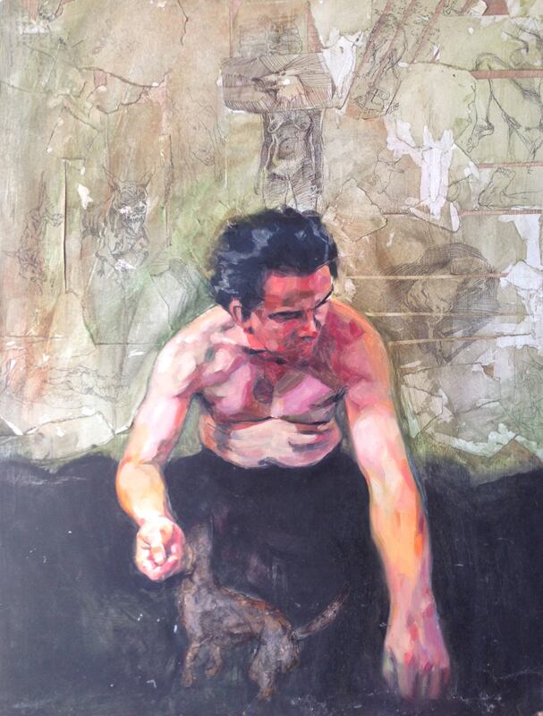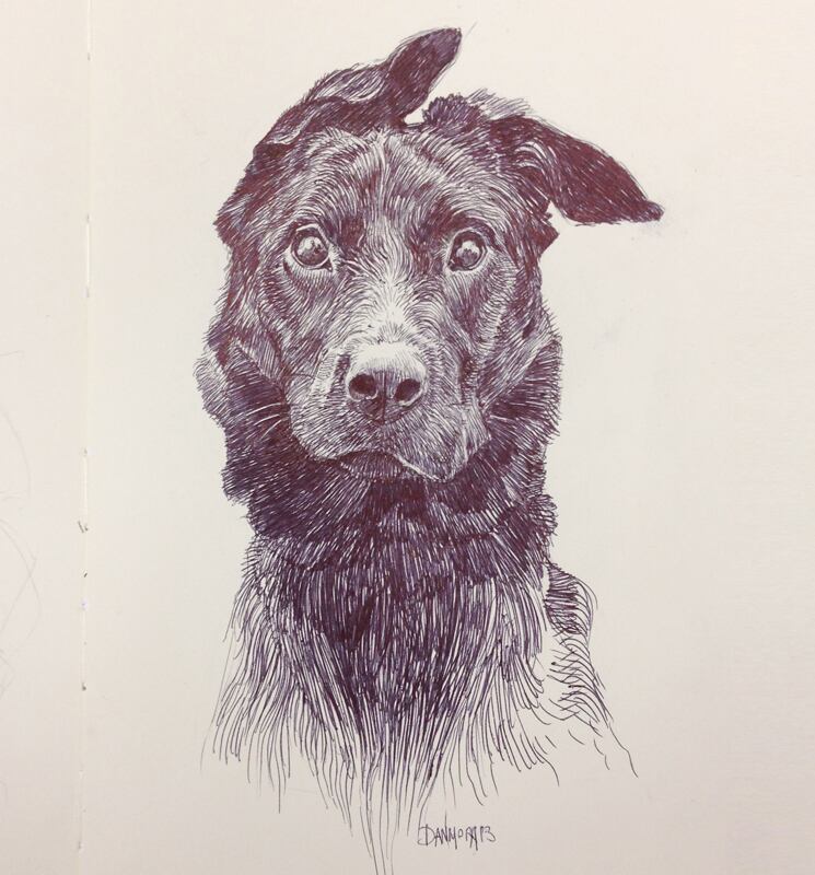 Para Daniel Mora (1986), una perrita fue confidente toda orejas. Un can de estirpe zaguate-alajuelense sigue posando en un cuadro ya pintado. Perros serán los protagonistas y deuteragonistas de una serie de acrílicos que este fabuloso artista tienen en mente. Un perro con cara de hombre fue un personaje que Daniel ejecutó cuando estudiaba pintura, y fue una de sus primeras penas de artista.