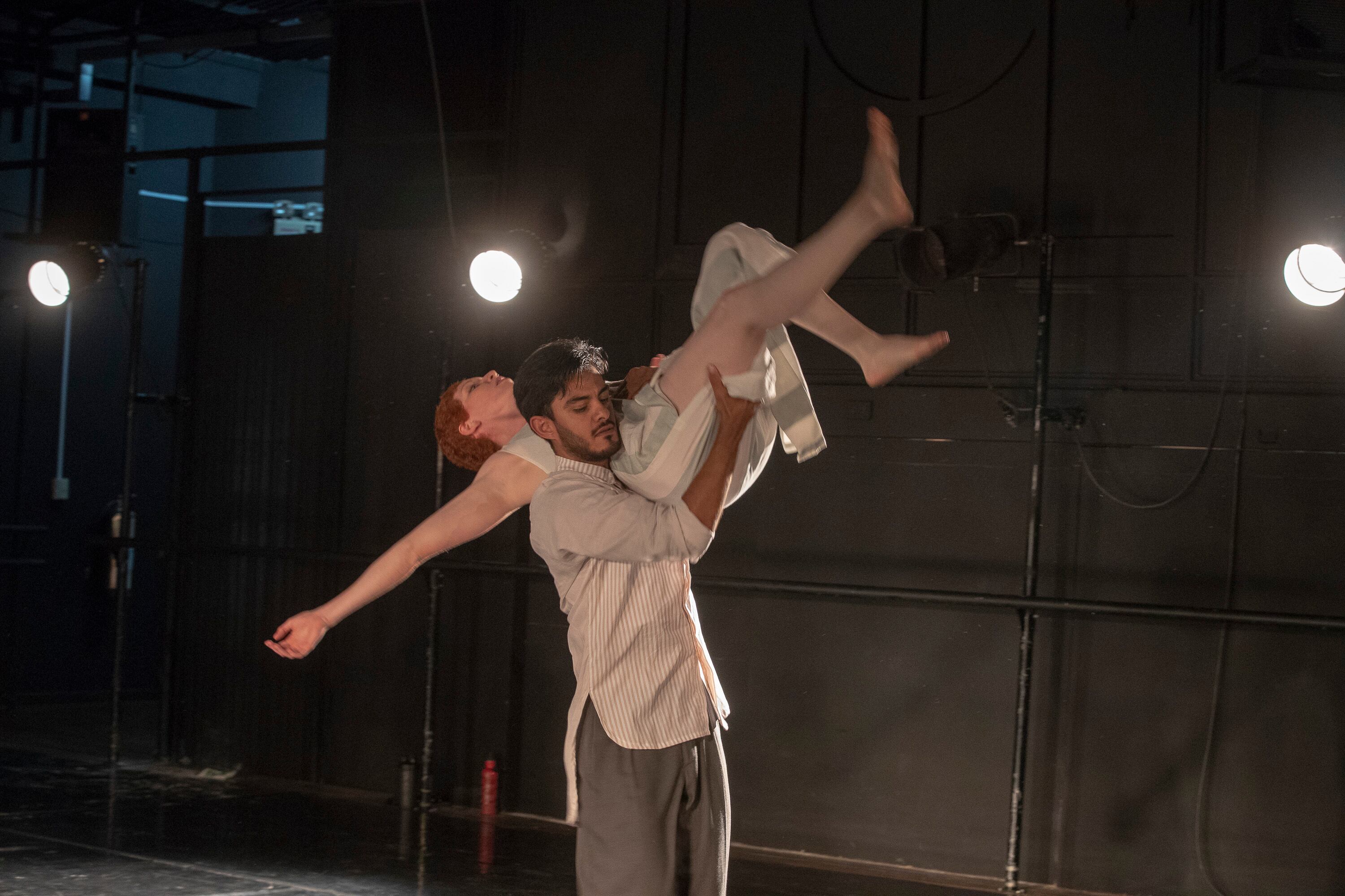 Los cuerpos de los bailarines se desplazan sobre el escenario buscando algún espacio donde puedan sentir control.