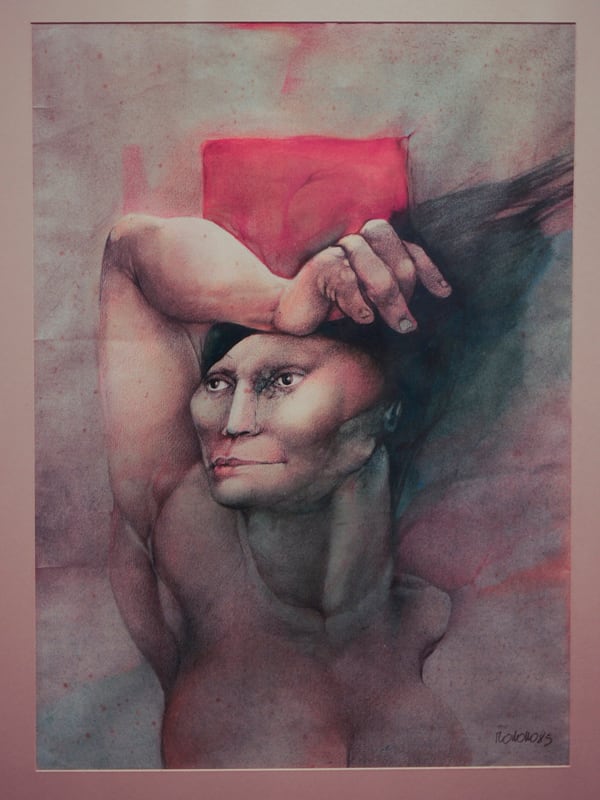 Lápices y tintas. “Hace mucho tiempo, le regalé un cuadro a una hermana del Arnaldo Moya, de Cartago, como yo. En los años siguientes, la señora Mayda Gutiérrez y su hijo Arnaldo compraron muchos trabajos míos. Yo no lo sabía, pero, cuando vi la colección me agradó comprobar que ellos habían recuperado obras que yo daba por perdidas”. Arnaldo Moya incluso viajó hasta el Ecuador para adquirir el expresivo cuadro La palabra.