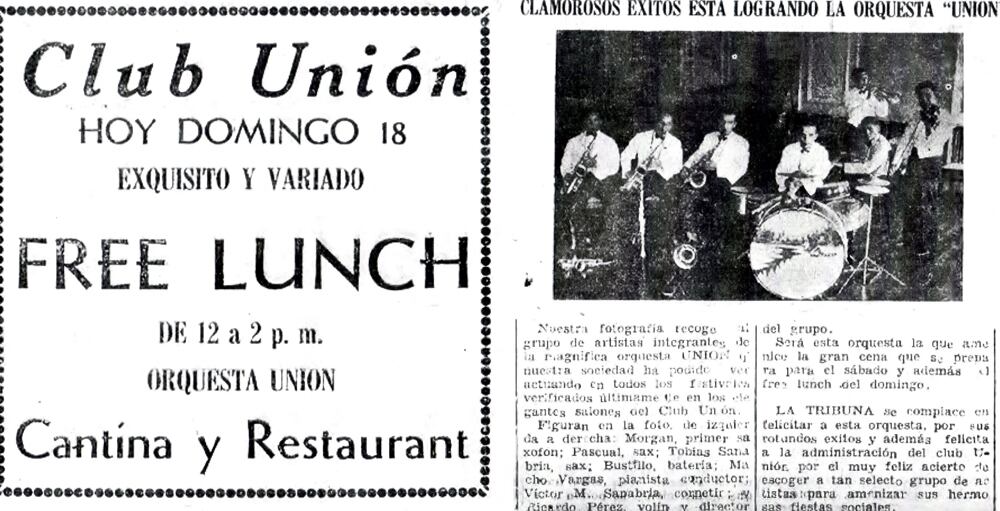 El 16 de setiembre del 1926, el diario La Nueva Prensa informaba sobre la presentación de la orquesta Unión, exclusiva del Club, para amenizar los bailes de aquellos años. La dirección del grupo musical estaba a cargo del maestro Héctor Beeche, pianista. En los violines se destacaban José Barrenechea, Alvar Antillón, Ricardo Pérez y José Marín. La sección de saxofones estaba a cargo de Aníbal Rojas y Rafael Castro. En las trompetas se escuchaban Mariano Prado e Ismael Cortés. El trombón de vara estaba a cargo de Luis Cerdas; en el contrabajo, el profesor Malaquías Jiménez y en la batería, José Quesada. Como curiosidad, aquella orquesta utilizaba un serrucho musical con José Quesada.