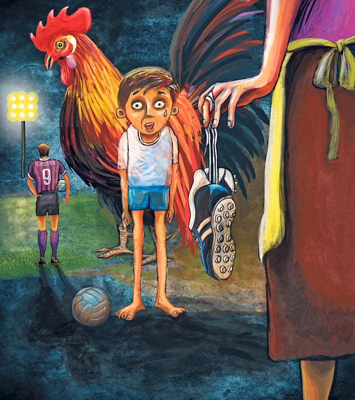 Una vez allí, Gaspar se acomodaba lo más cerca posible del improvisado “altar”, tratando de pasar inadvertido para el grupo de amigos. A pesar del magnetismo que ejercían aquellas imágenes sobre su ser, por instantes apartaba su atención de la pantalla para observar las reacciones de aquellos adultos, y cómo, al calor de los partidos, se trocaban: reían, vociferaban, se enojaban o celebraban, en una tertulia tan alegre, tan vívida, tan anclada en el momento presente, que a Gaspar se le antojaba estar en una isla flotante sobre aquel conglomerado de penurias y miseria que envolvía habitualmente su barriada.