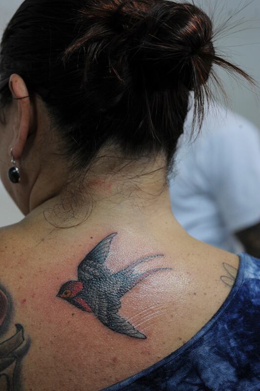 Cuando llegó el momento de realizar la pieza, Ami se concentró solo en Jaqueline y en el espacio destinado para el tatuaje de la golondrina.
