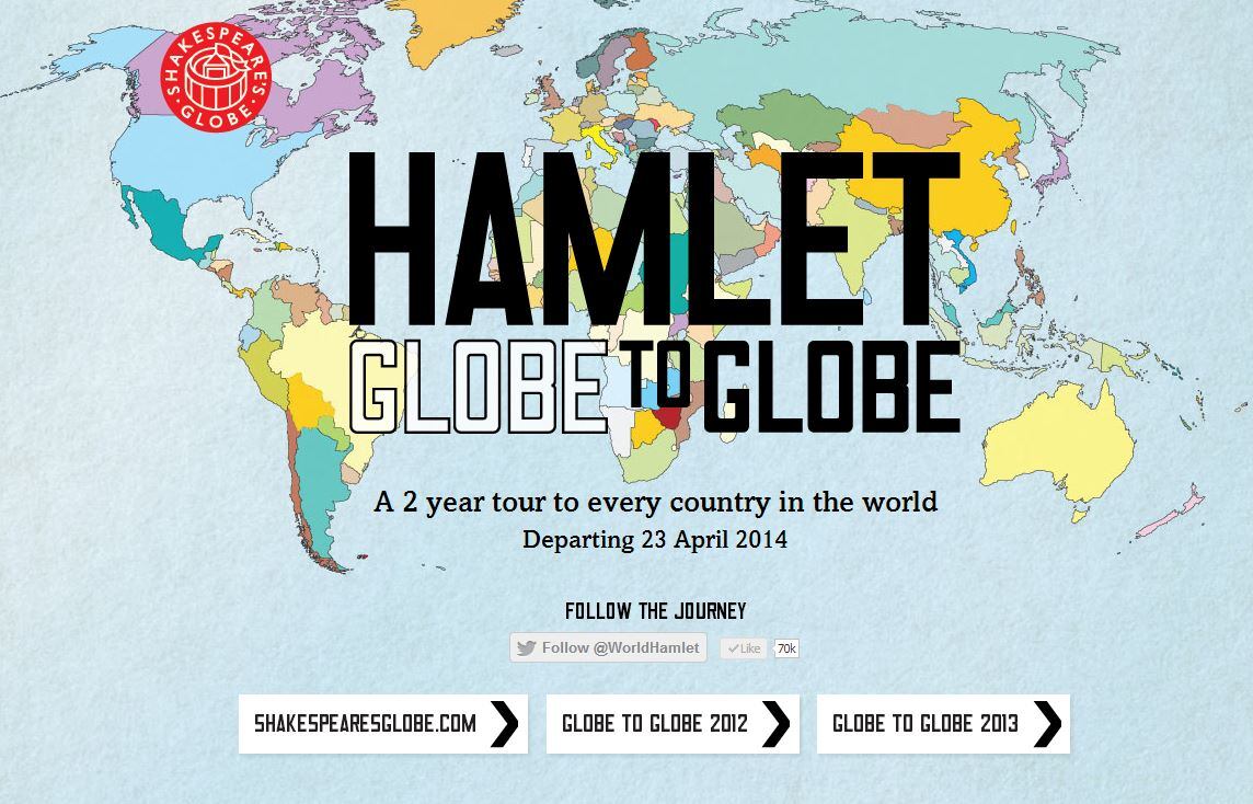 Con esta iniciativa, la compañía The Globe, una copia del icónico teatro en el que el dramaturgo estrenó varias de sus obras, encabeza este extenso homenaje al autor, que concluirá con la vuelta de los actores a Londres el 23 de abril de 2016, año en que se cumplirán 400 años de la muerte de Shakespeare.