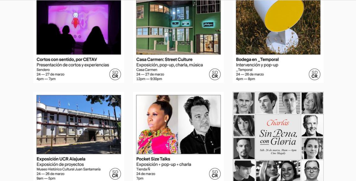 Puede conocer la agenda completa de actividades en el sitio web semanadeldiseno.cr. Puede disfrutar de esta programación sin costo alguno.