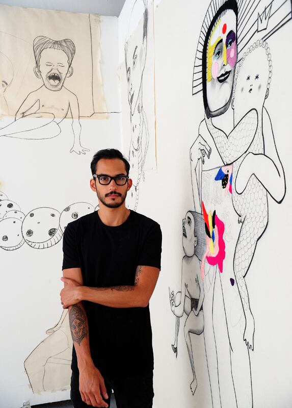 Algunos se asoman desde las esquinas y otros retozan en fusiones eróticas imposibles. Un par se desvanece al borde de la sala; otro parece cosido a la pared para siempre. Con la exposición Yo nunca , de Andrés Gudiño, la Sala 1.1 del Museo de Arte y Diseño Contemporáneo se sobrepobló de personajes fascinantes.