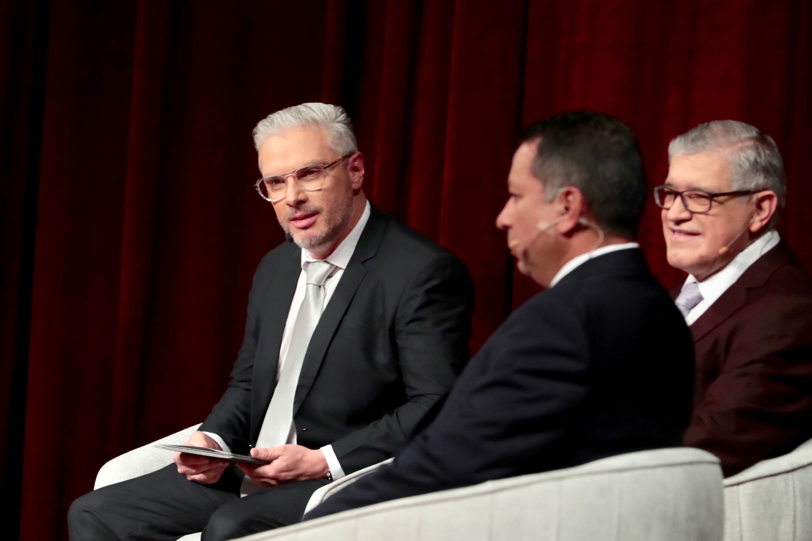Para el siguiente bloque, el presidente Carlos Alvarado, el político y profesor Vladimir de la Cruz, el director musical Marvin Araya, el expresidente de la Asamblea Legislativa Rolando Laclé y el exministro de Educación Francisco Antonio Pacheco conversaron con el periodista Randall Rivera.