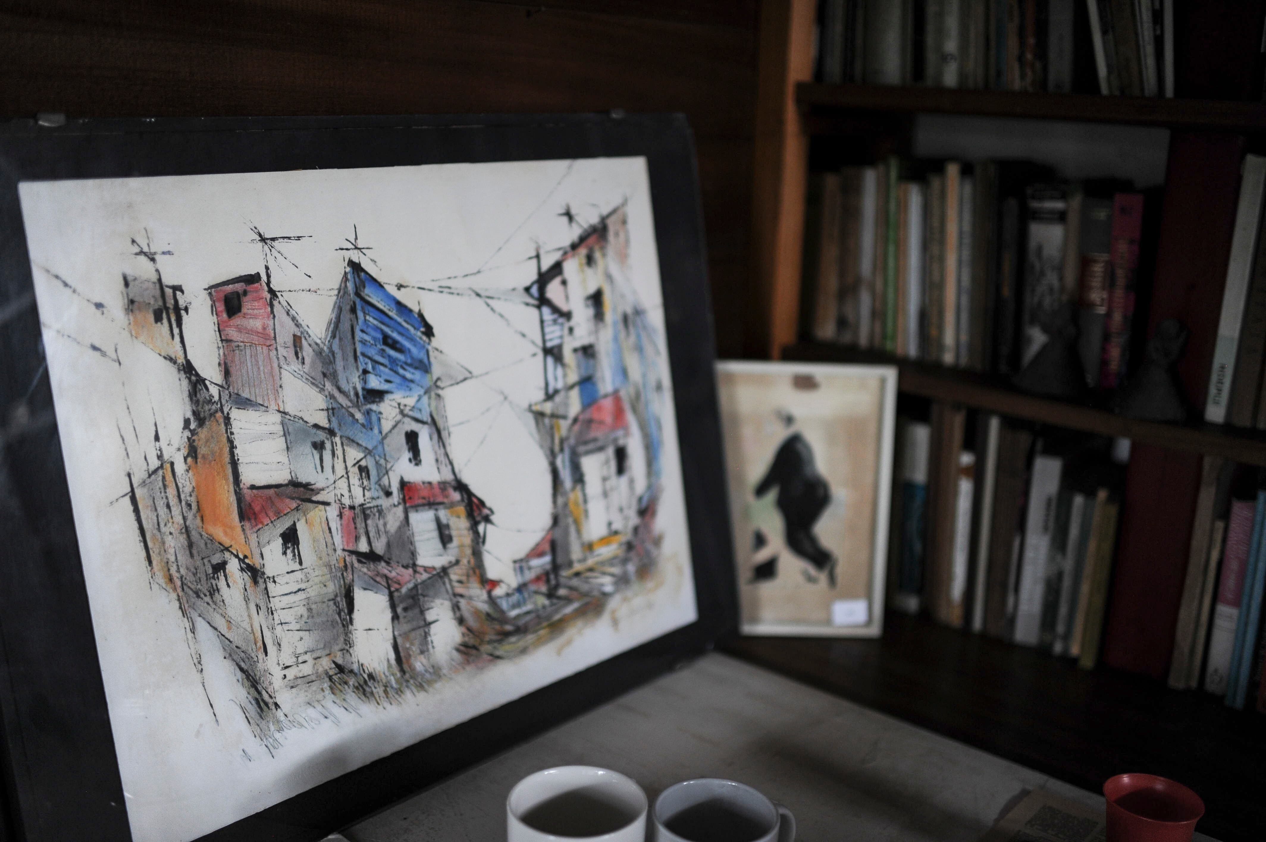 En su casa guardaba muchos recuerdos de su vida y sus pasiones. En un rincón había trabajos de arte matérico de los años 50 y 60, entre ellos sus tugurios, esas piezas que homenajeaban la “arquitectura espontánea”, como él la llamaba.