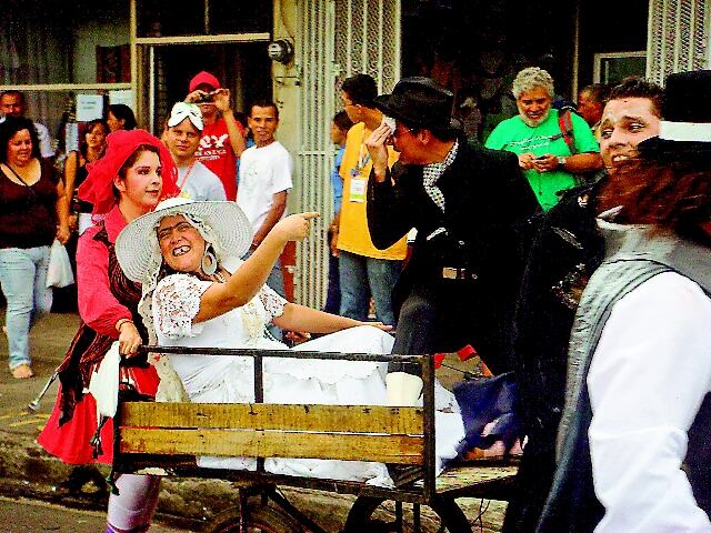La obra integra a los transeúntes en las divertidas aventuras de este matrimonio, y concluye cerca de la tarima principal. Luego, se presentará la banda Vieja Metrópoli.