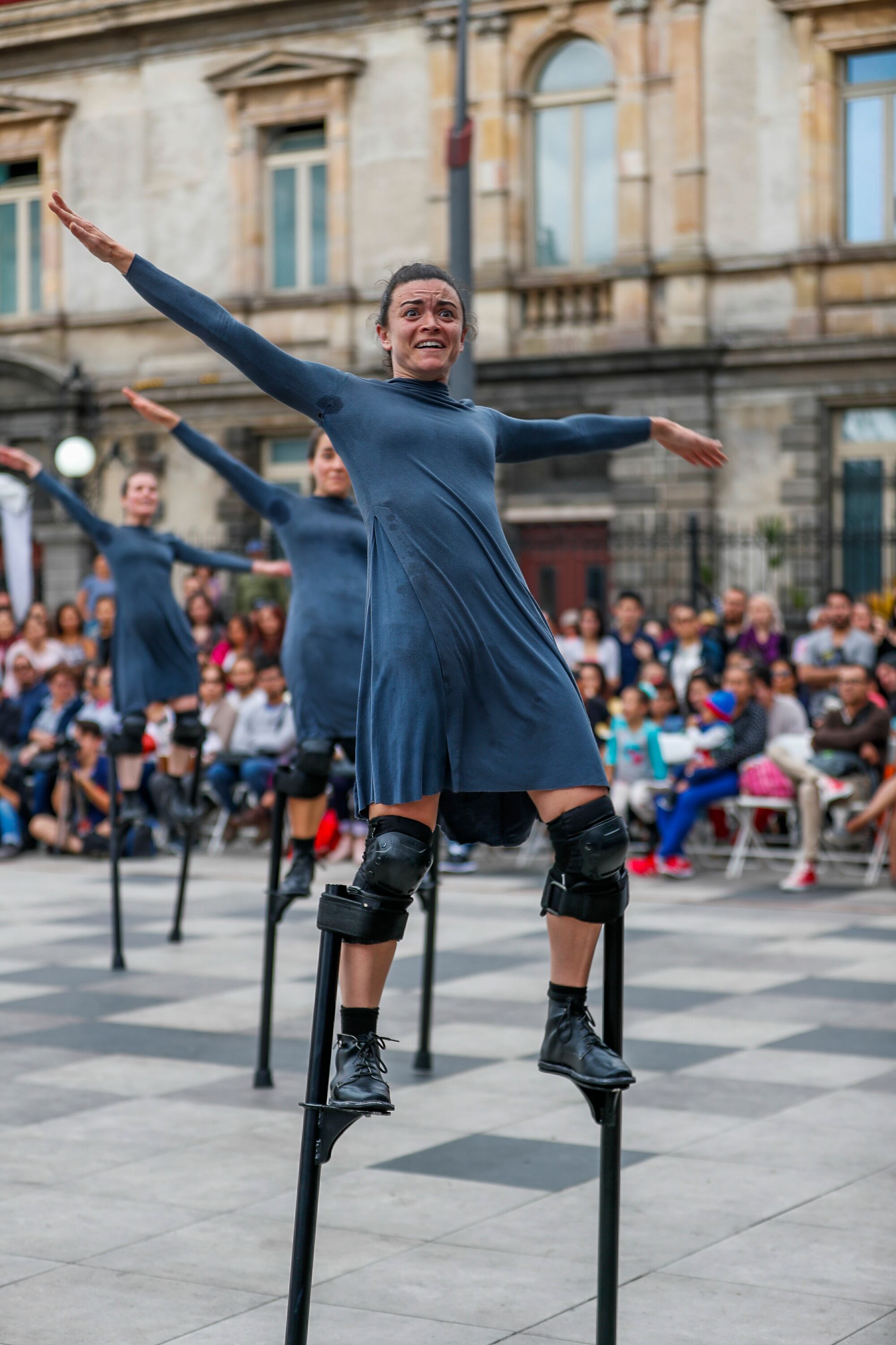 El escenario de este último lugar duró muy poco ocupado por palomas y niños jugando porque, pronto, ingresaron al escenario cinco bailarinas subidas en zancos altos. Las artistas de la Compañía Maduixa advirtieron por los parlantes que el público tenía que mirarlas con los ojos y no con las pantallas de sus celulares.