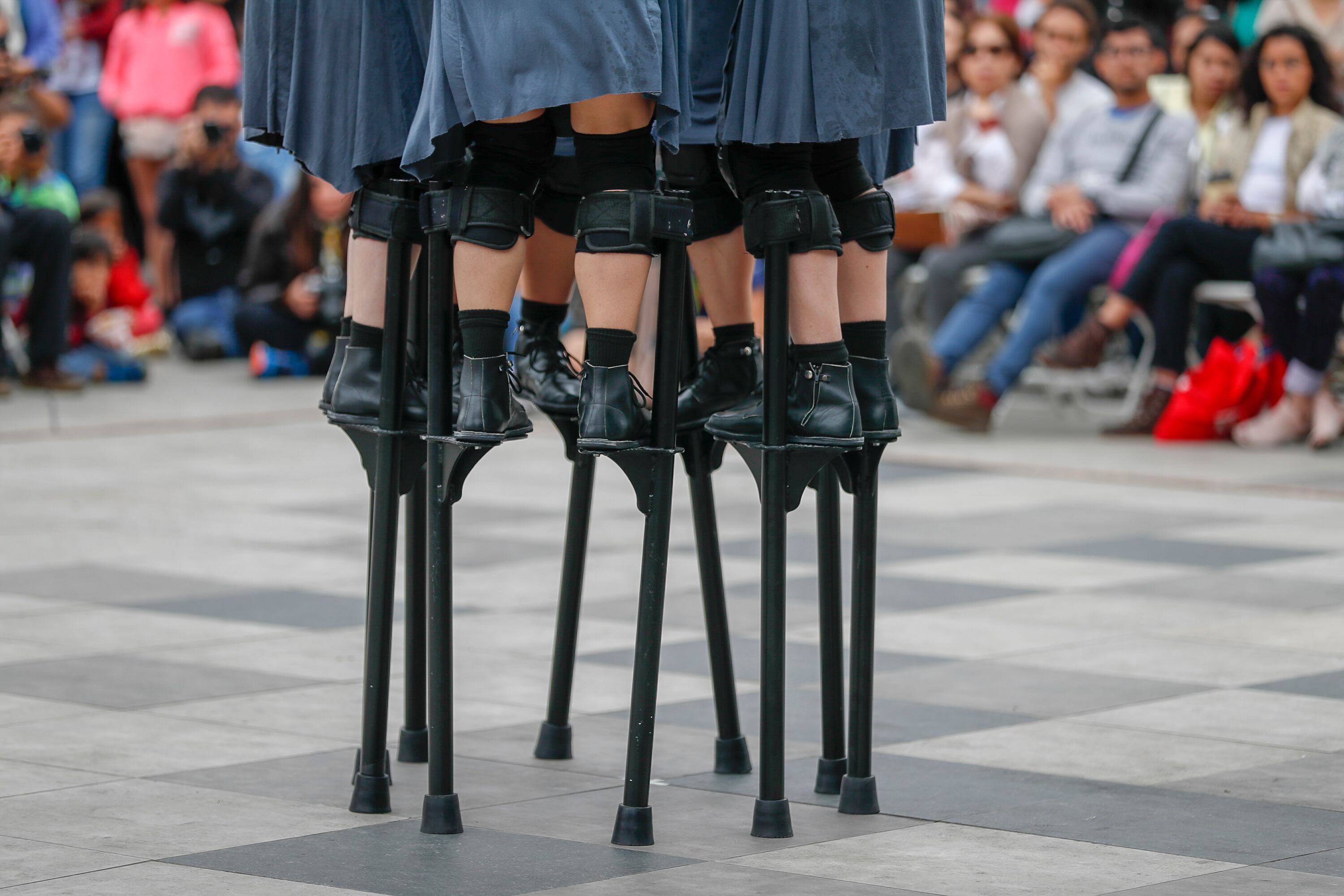 Los asistentes observaron impresionados el control preciso que las bailarinas tenían de sus piernas sobre los zancos. La interpretación ofreció movimiento con agilidad y sincronía precisa.